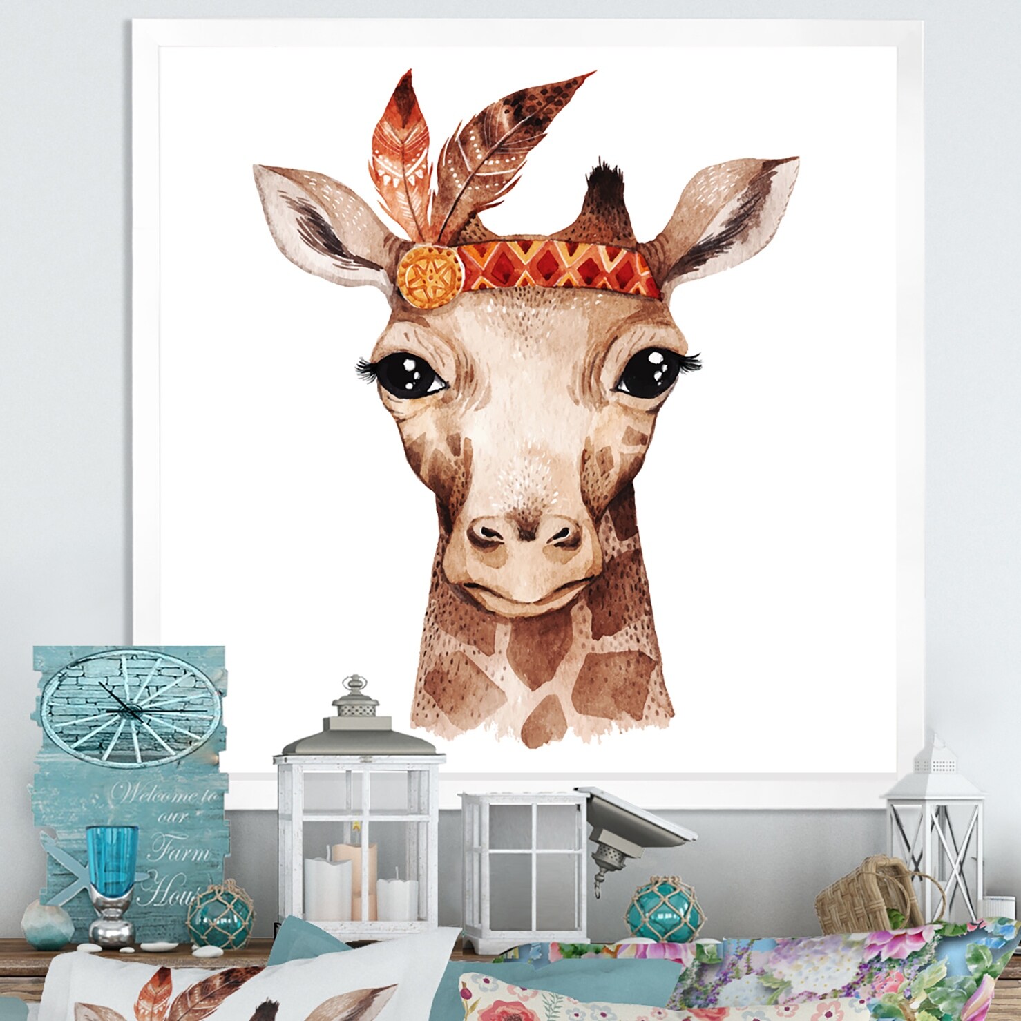 Designart "Cute Giraffe Portrait for Kid" Traditional Framed Children's Art Print