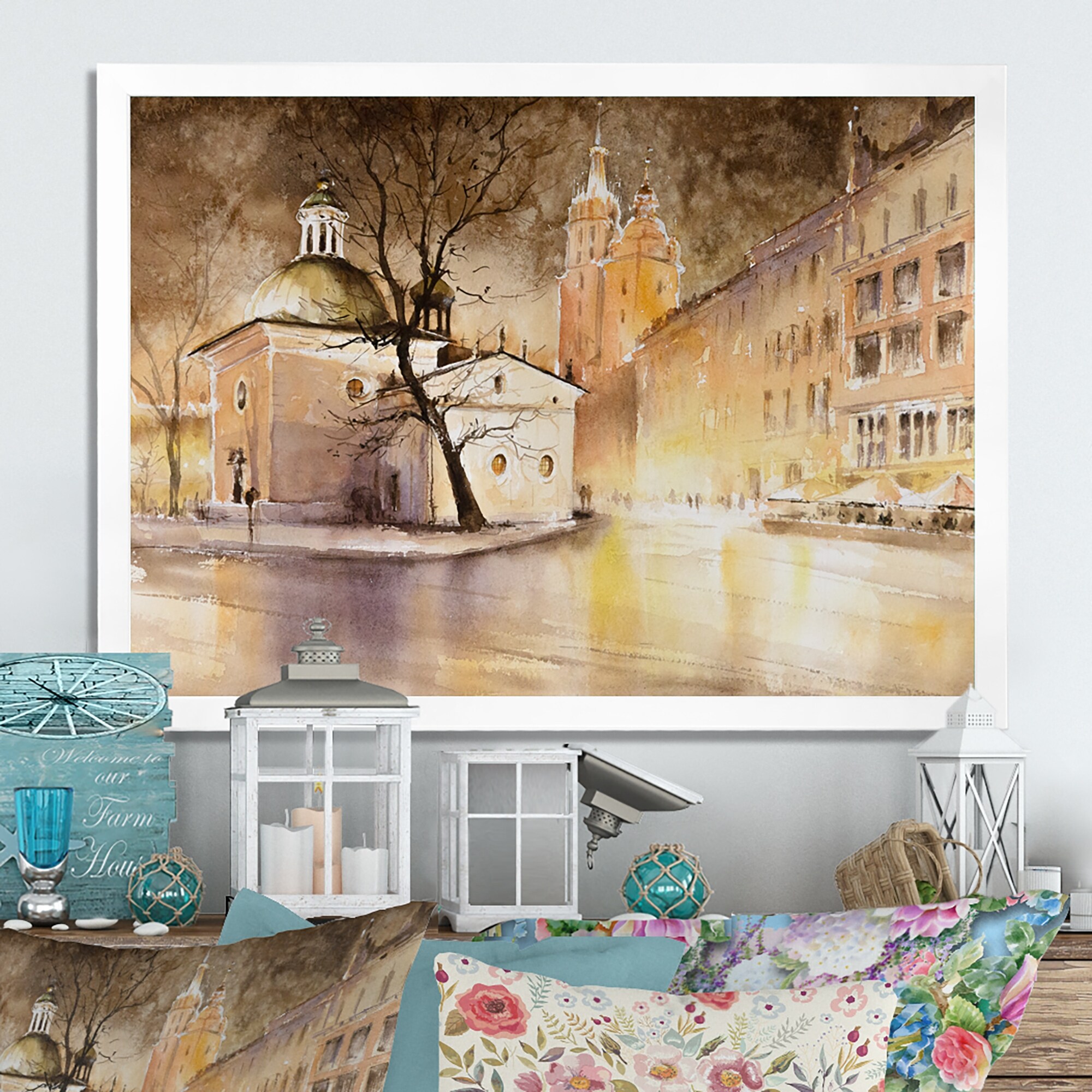 Designart 'City of Churches Watercolor' Cityscape Circle Wall Art