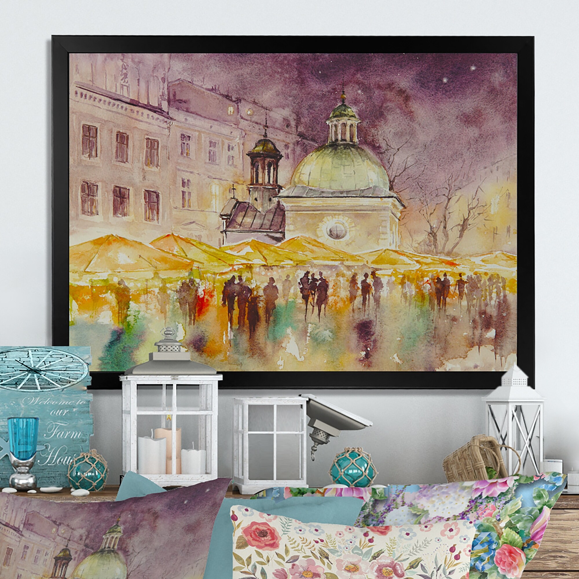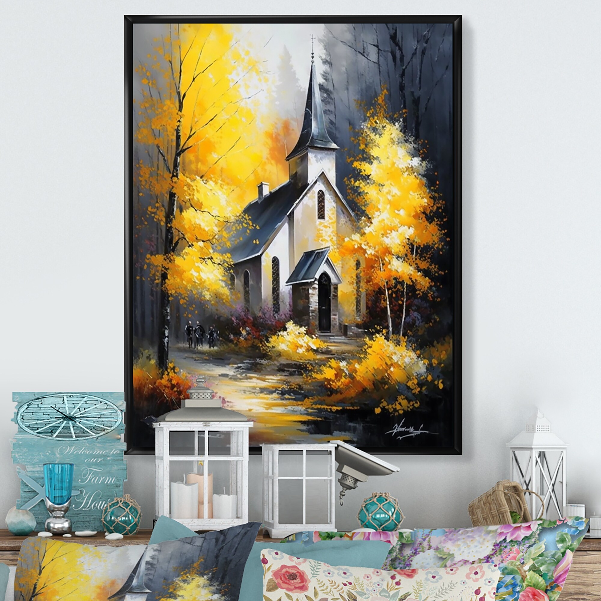 Designart "Christian Church Has Lights Shining" Traditional Framed Wall Art