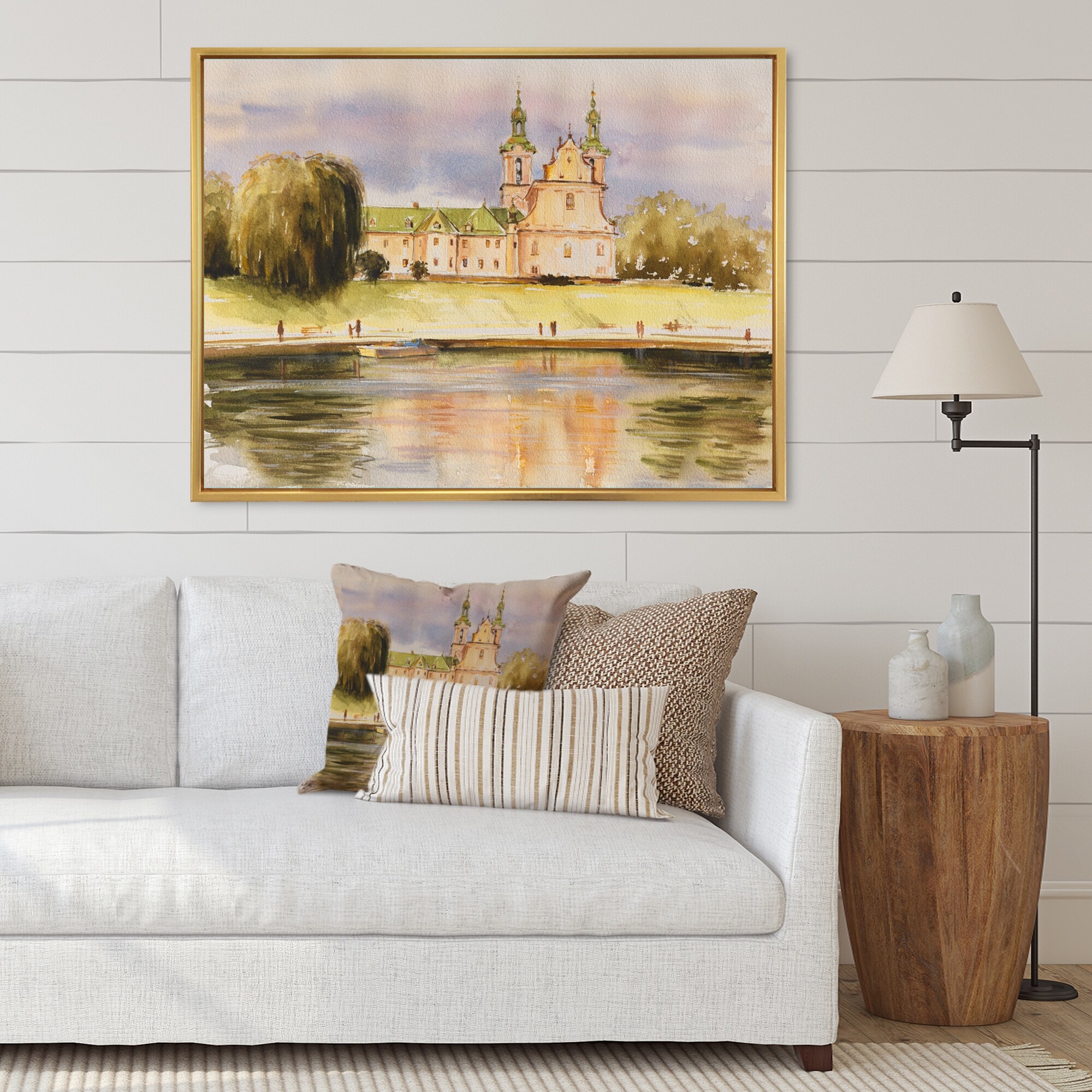 Designart "The Historic Church on the Rock By the River" Lake House Framed Canvas Wall Art Print