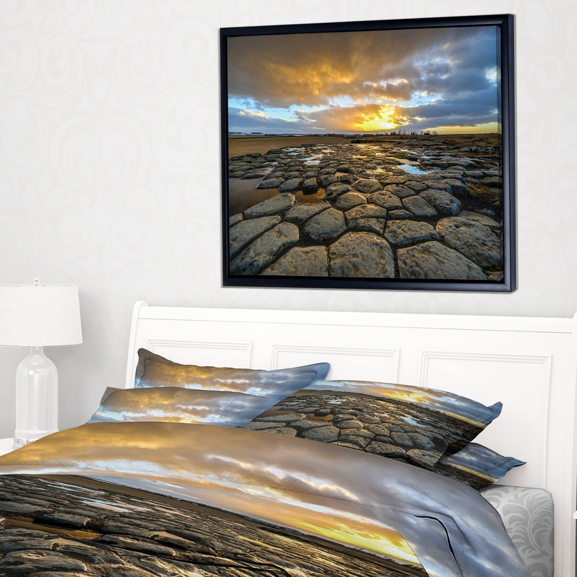 Designart "Kirkjugolf Church Floor at Sunrise" Seascape Framed Canvas Art Print