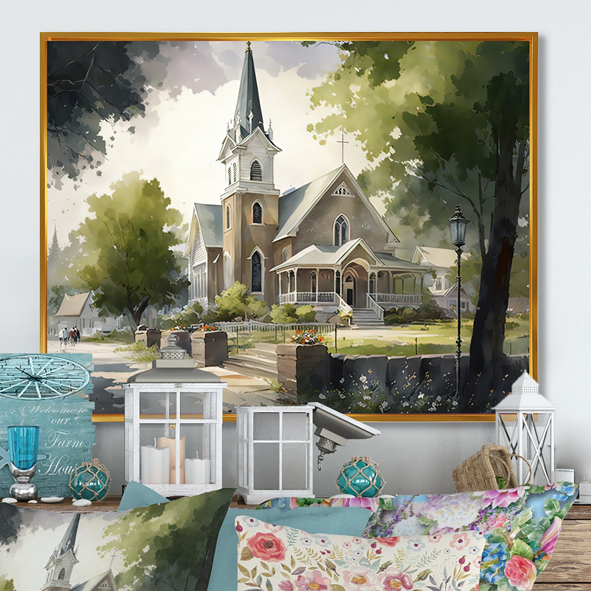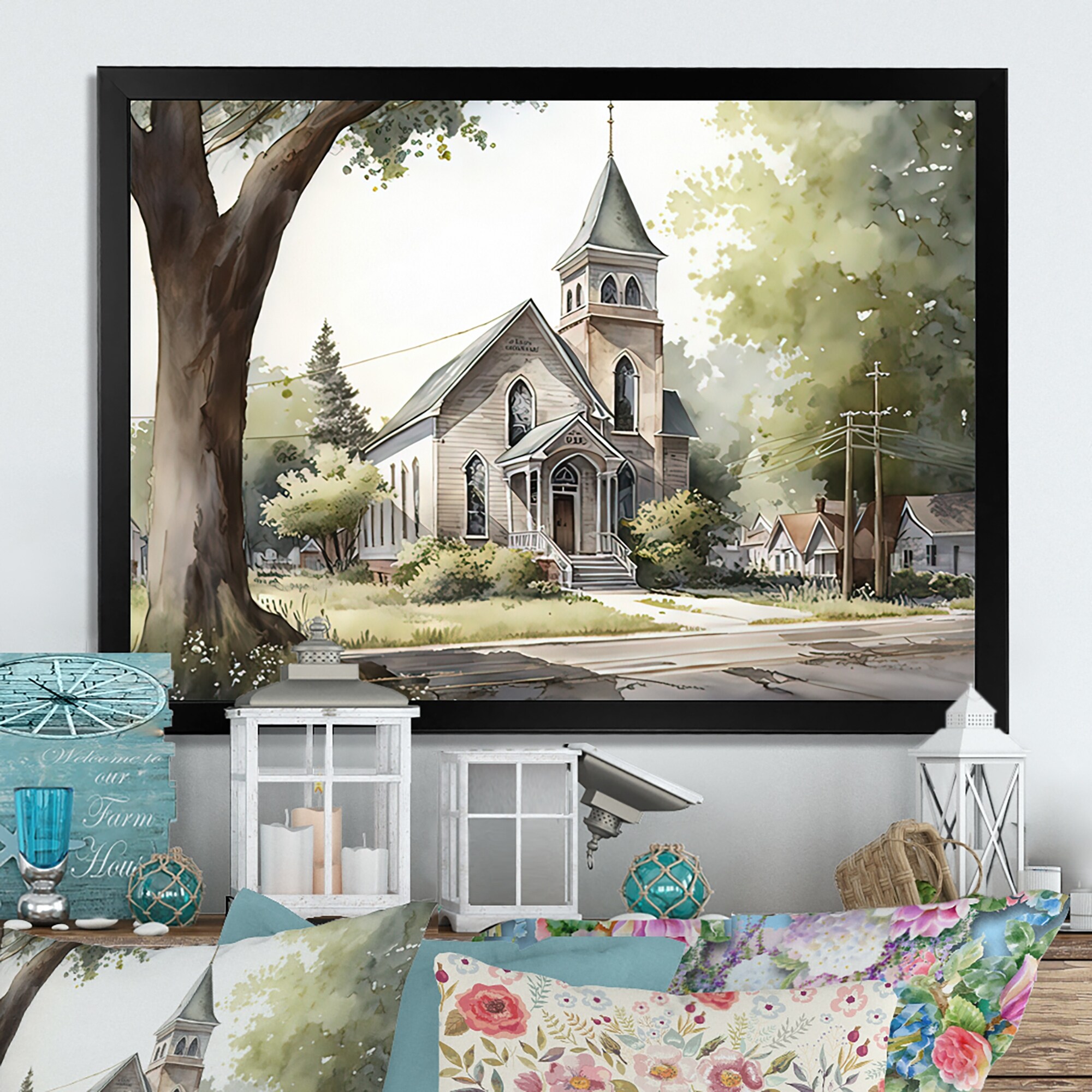Designart "Church In Country Town IV" Spiritual Framed Art Print