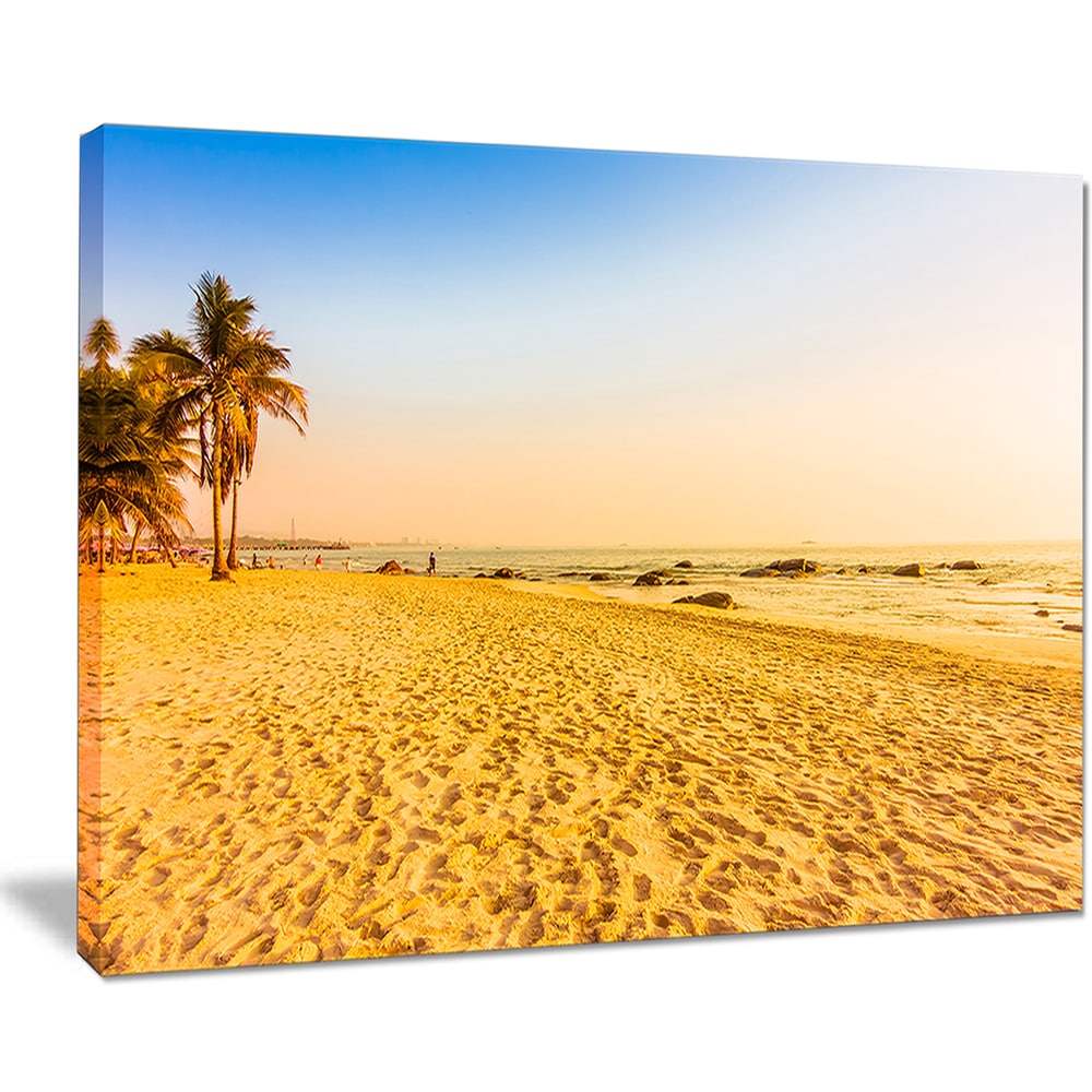 Designart "Beach with Coconut Palm Trees" Landscape Photo Canvas Art