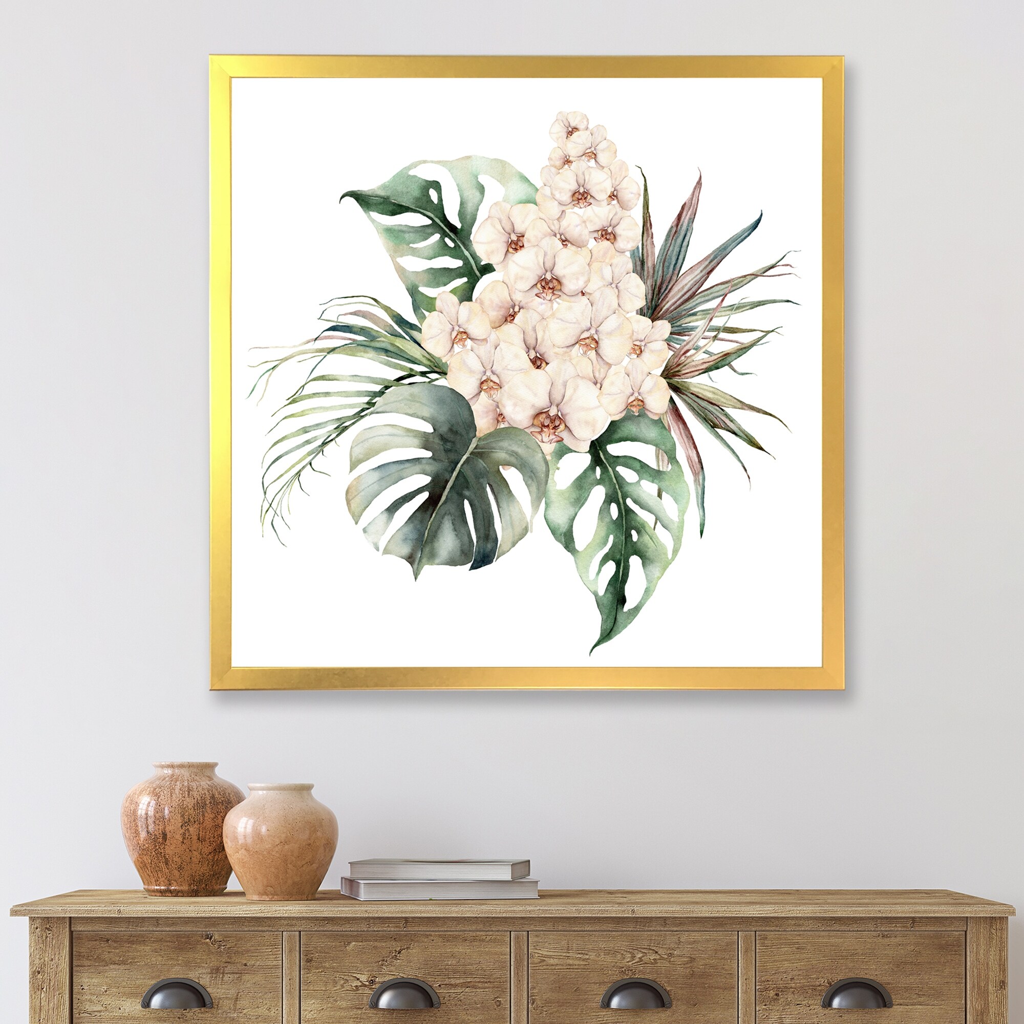 Designart "Bouquet With Orchids Monstera and Coconut Leaves" Traditional Framed Art Print