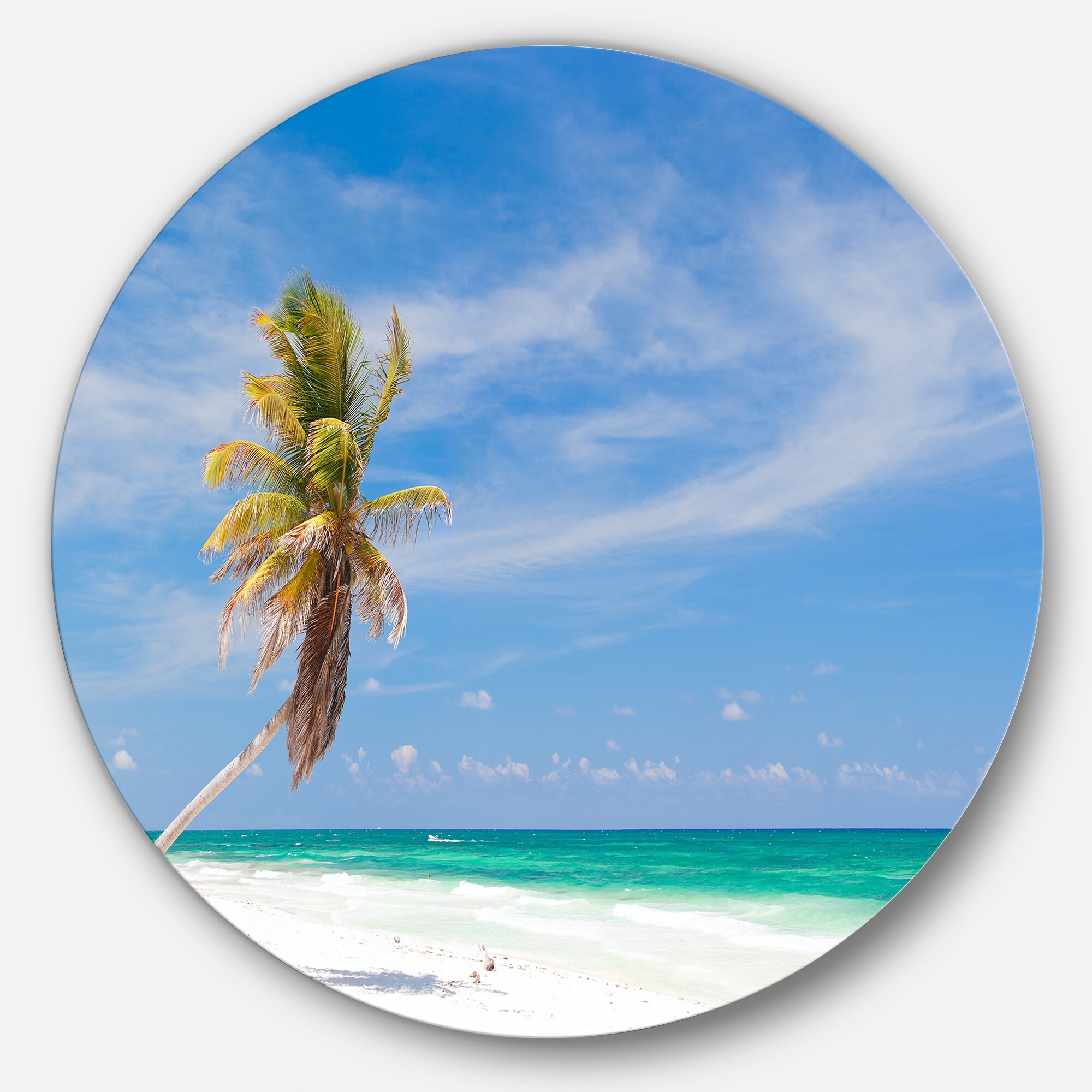 Designart 'Solitary Coconut Palm at Beach' Seashore Photo Large Disc Metal Wall art