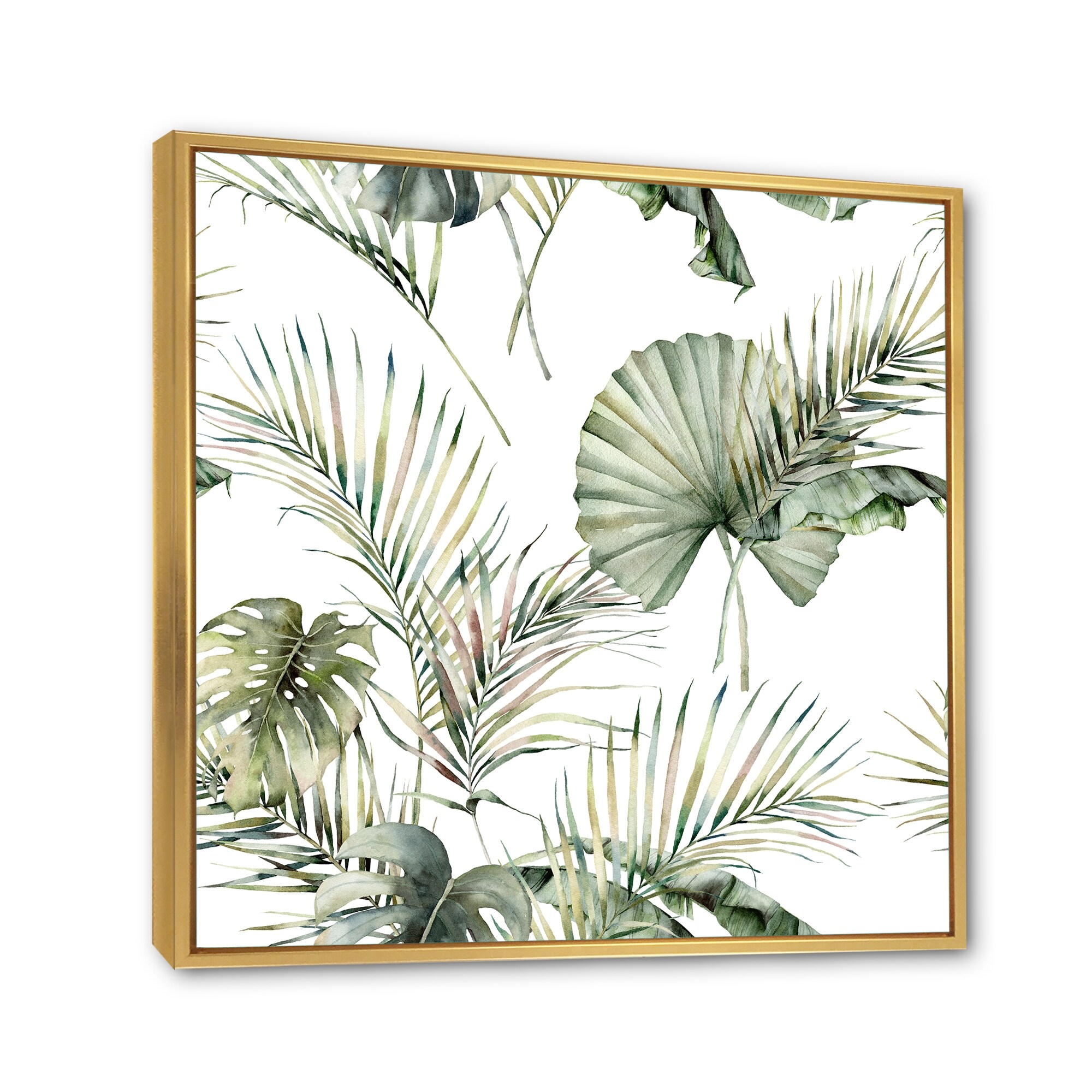 Designart "Tropical S Pattern With Monstera & Coconut Leaves" Traditional Framed Canvas Wall Art Print