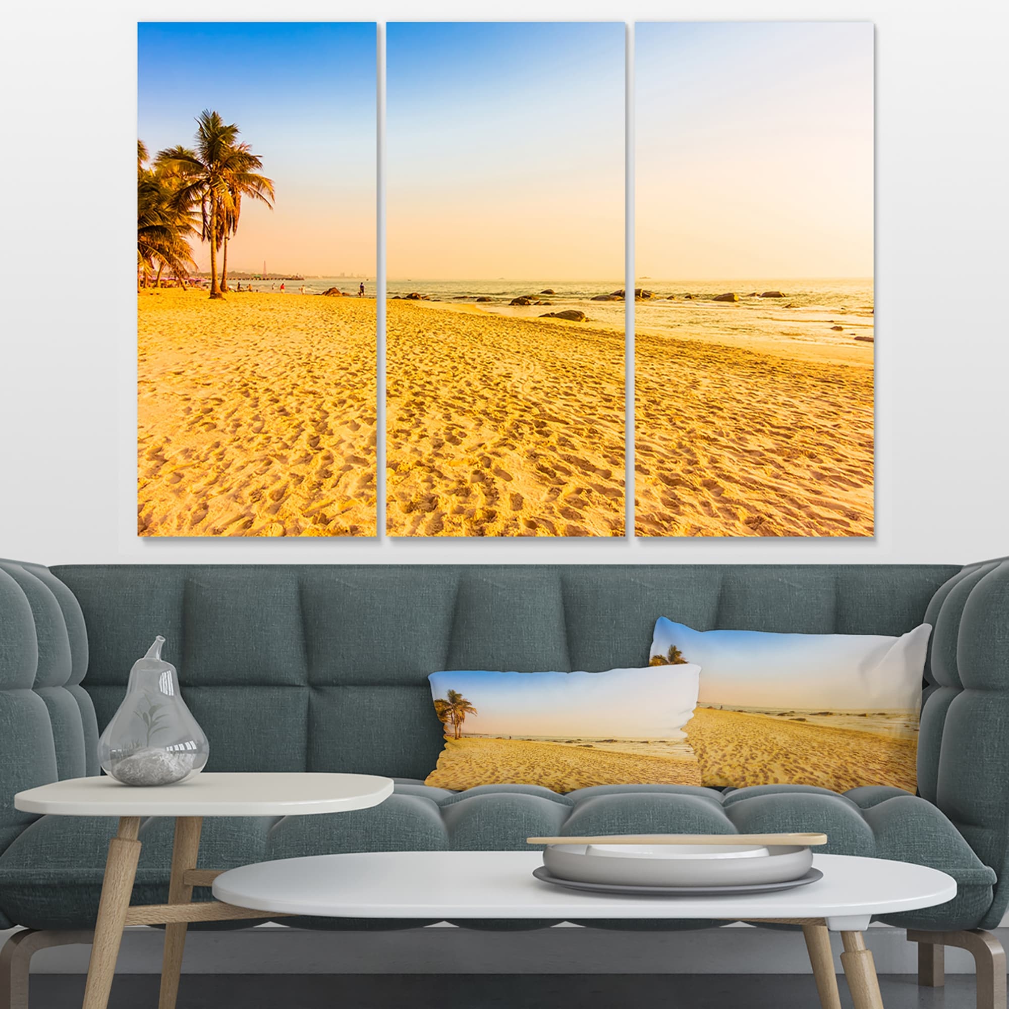 Designart "Coconut Palm Trees on Beach" Landscape Photography Canvas Print - 36x28 - 3 Panels