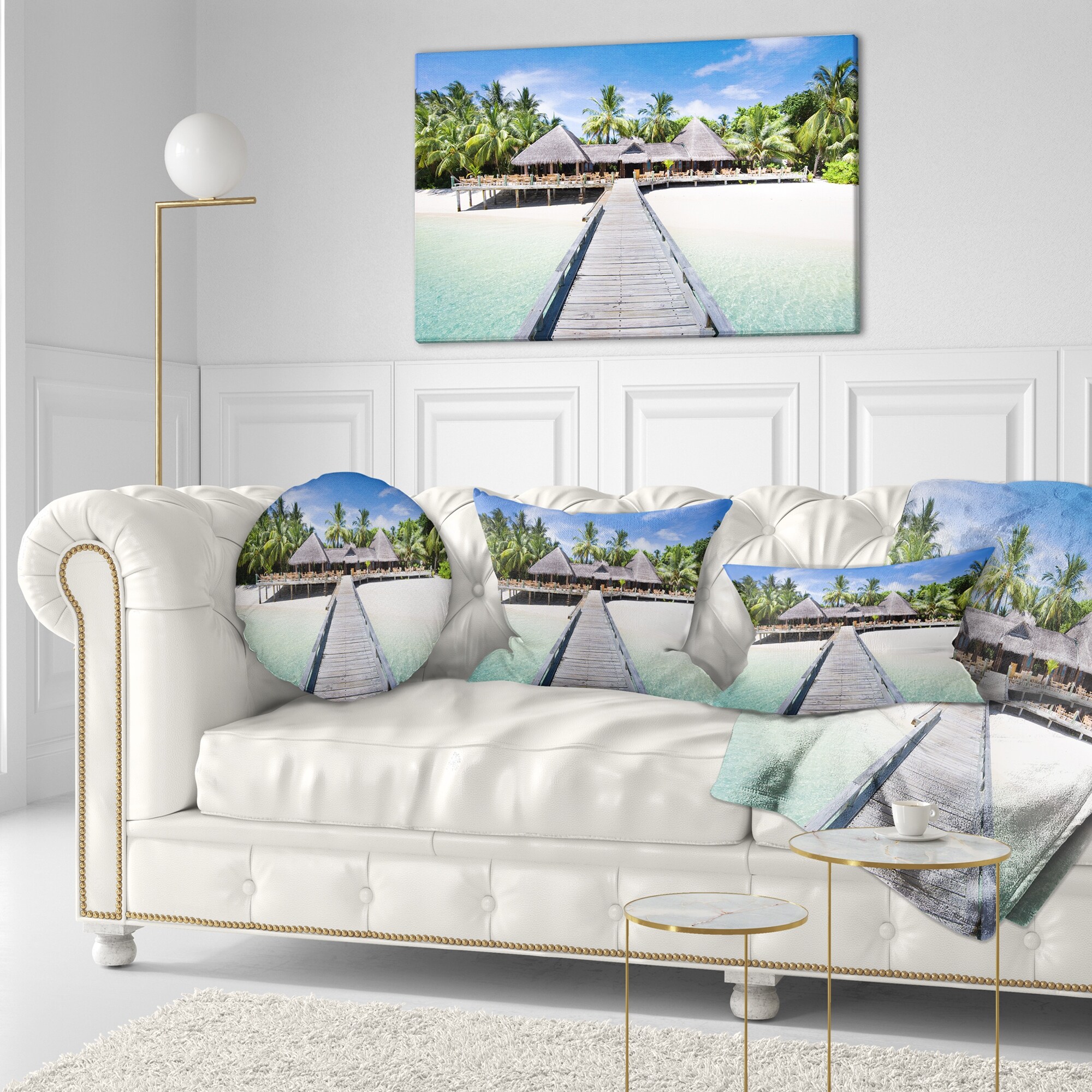 Designart 'Tropical River with Bent Coconut Palm' Landscape Printed Throw Pillow