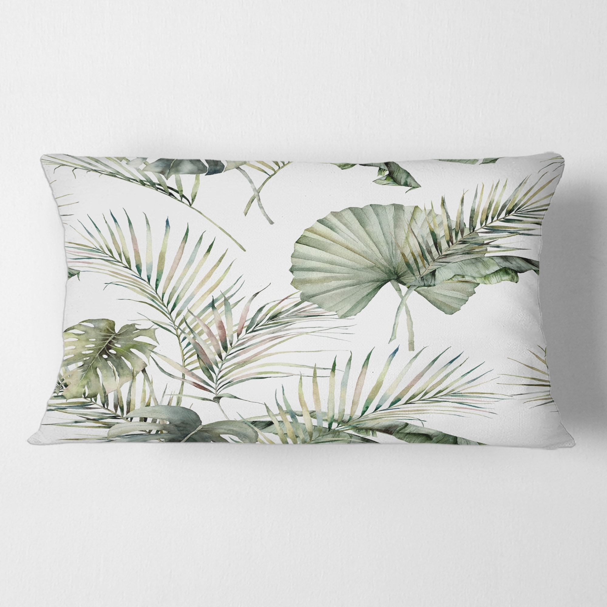 Designart 'Tropical S Pattern With Monstera & Coconut Leaves' Traditional Printed Throw Pillow