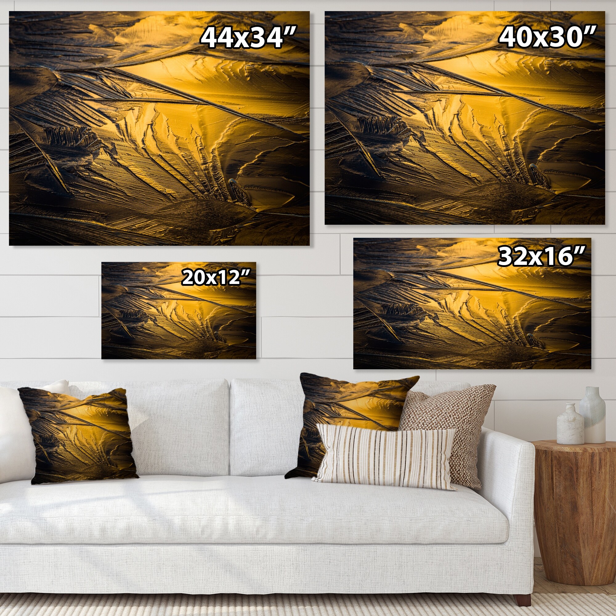 Designart "Yellow And Grey Cold Ice" Traditional Canvas Wall Art Print