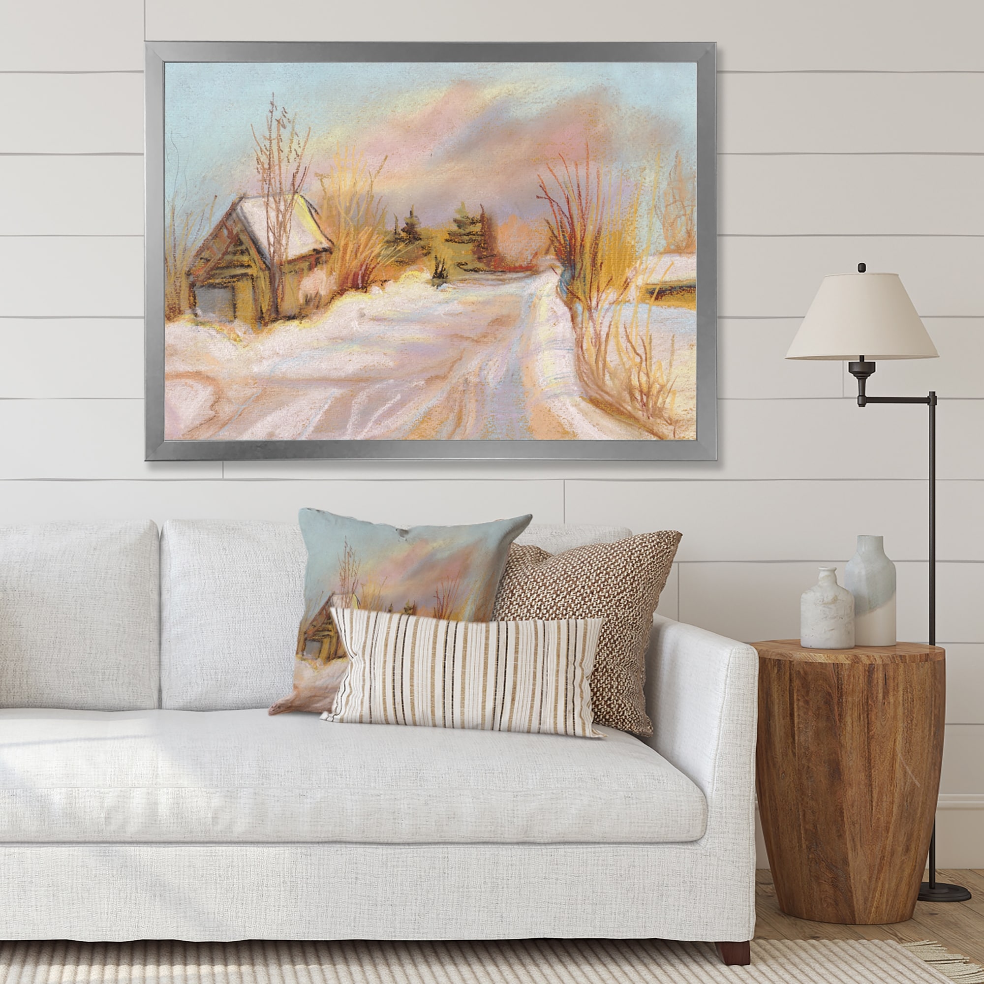 Designart "Cold Rural Winter Day" Country Framed Art Print
