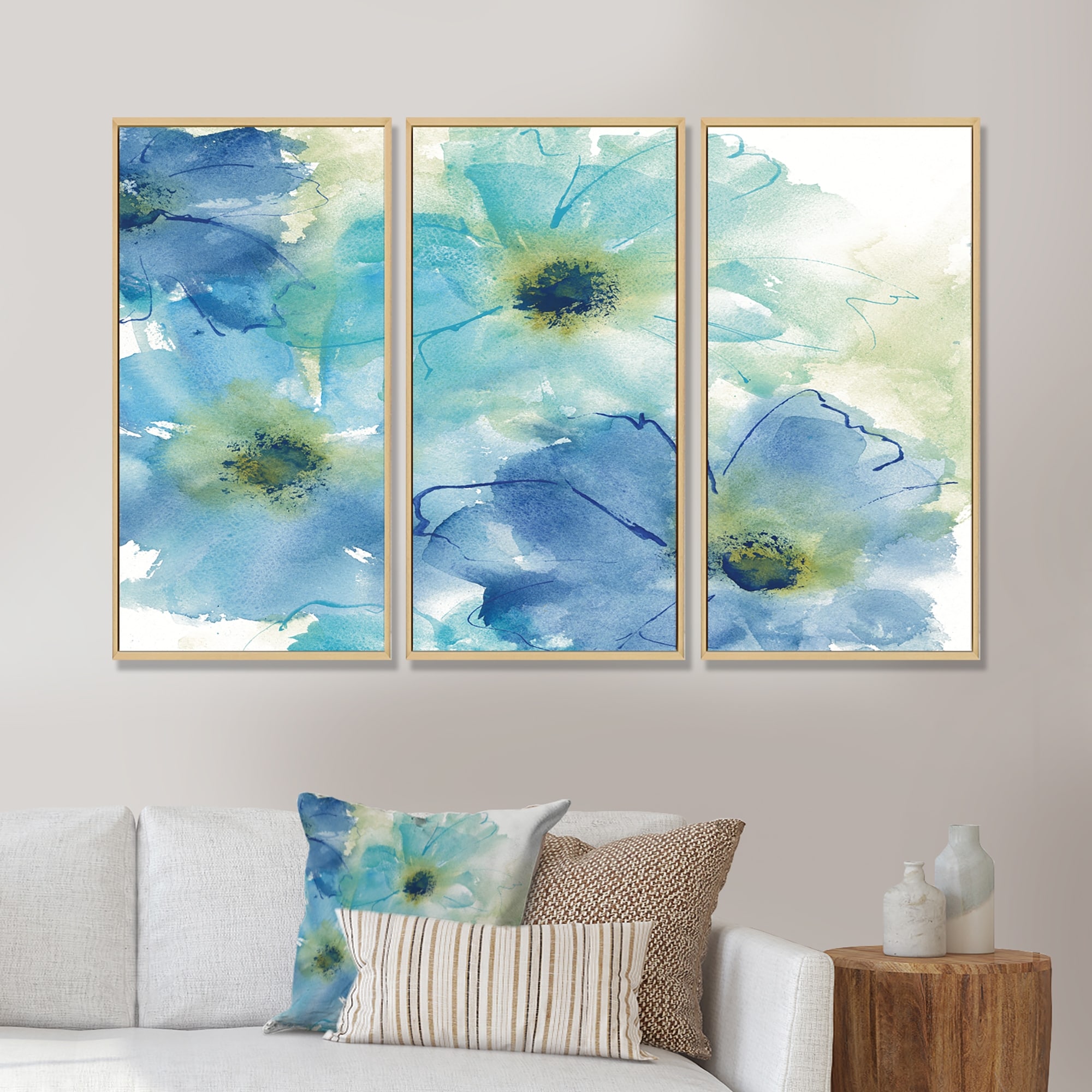 Designart "Blue Cosmos Indigo I" Farmhouse Framed Canvas Wall Art Print Set of 3 - 4 Colors of Frames