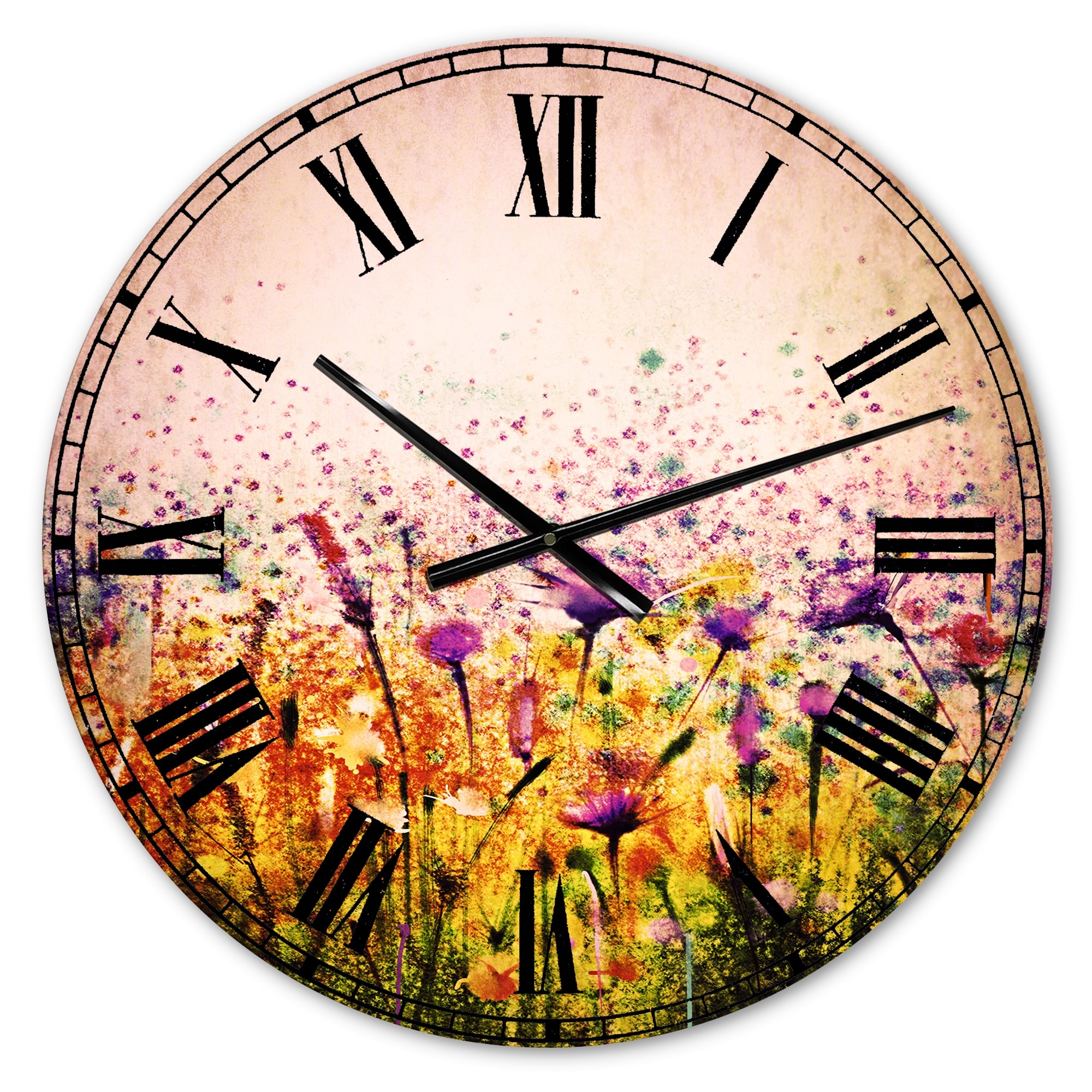 Designart 'Abstract Cosmos of Colorful Flowers' Flower Large Wall CLock