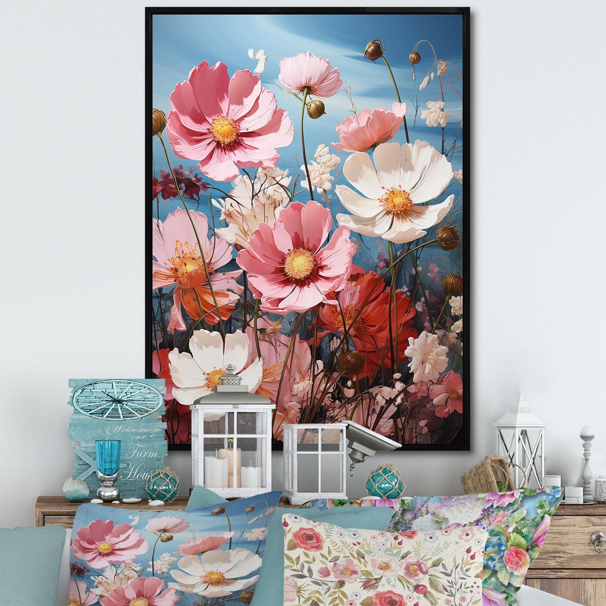Designart "Blooming Pink Cosmos Flowers" Floral Framed Art Prints Set of 3 - 4 Colors of Frames