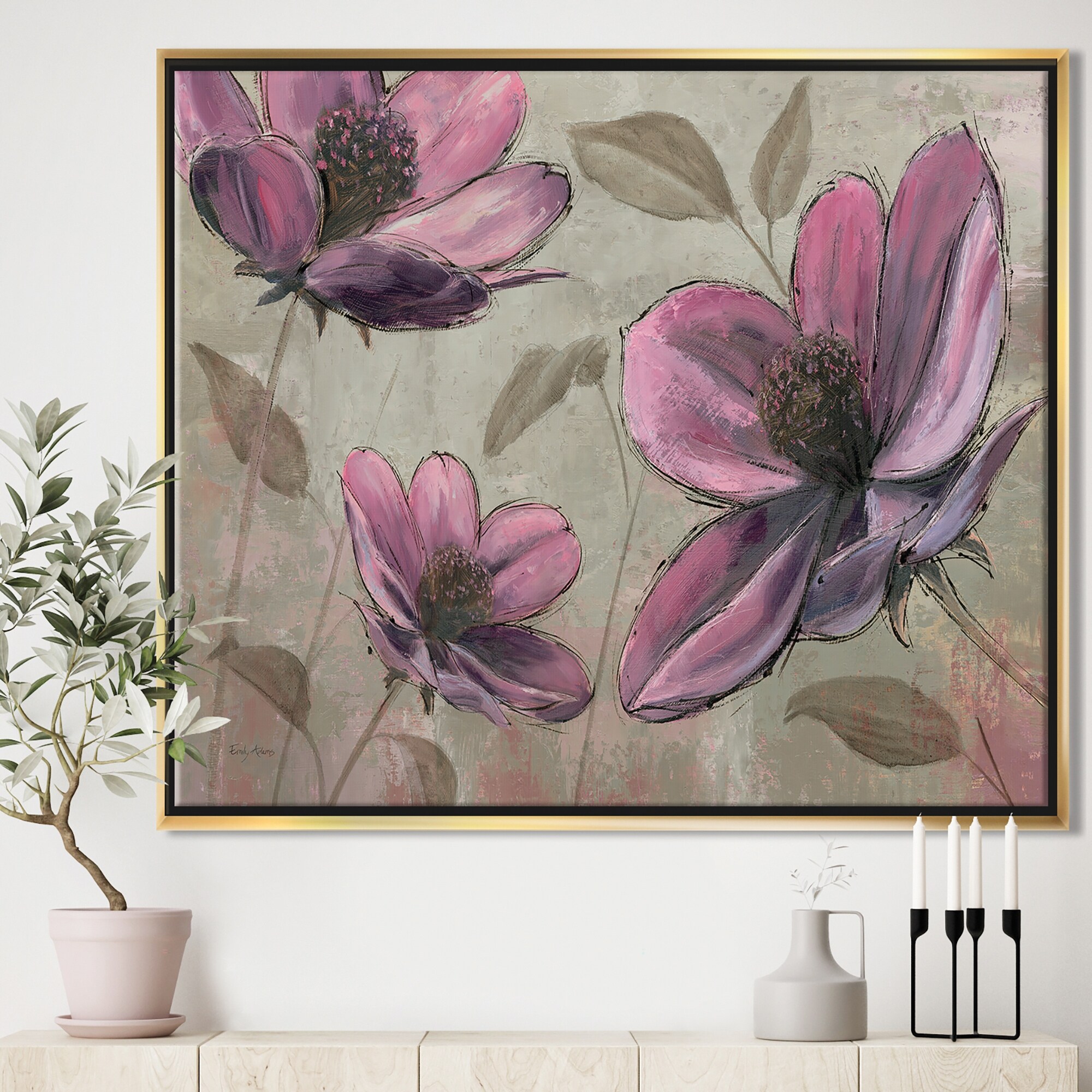 Designart "Plum Pink Cottage Flowers" Traditional Framed Canvas - Brown