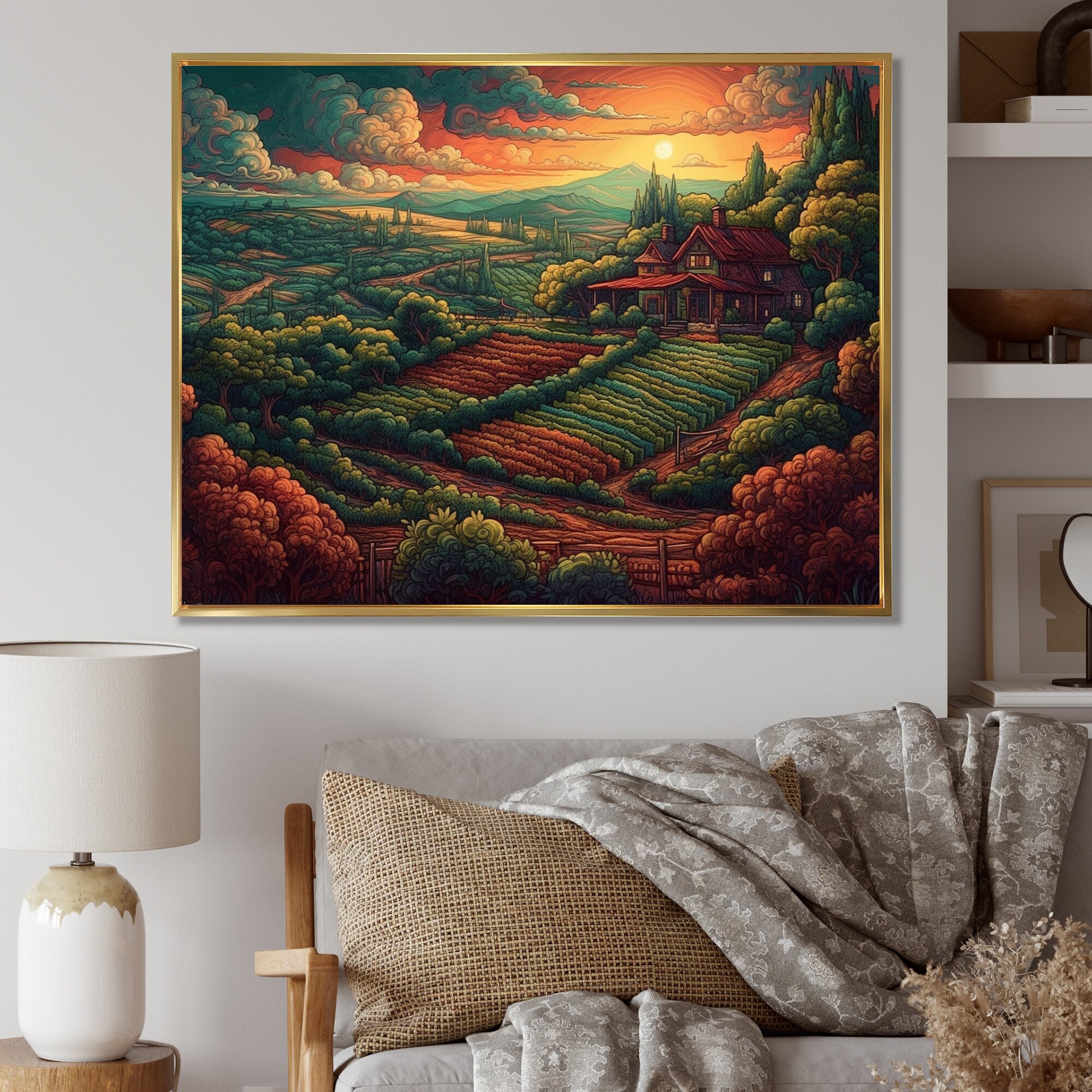Designart "Cottage In the Valley I" Cottage Landscape Framed Canvas Print