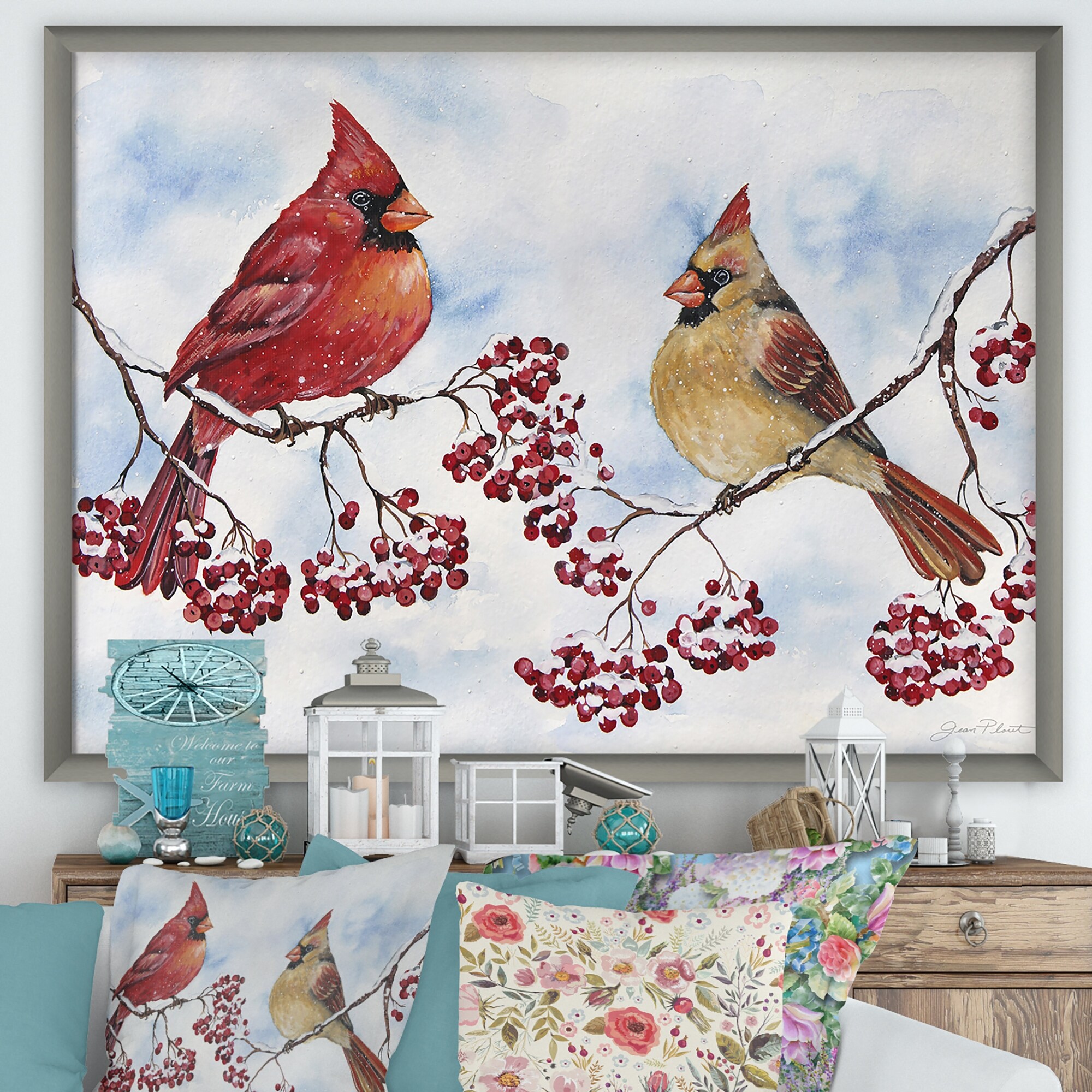Designart "Two Cardinals And Snowy Winter Berries" Cottage Premium Framed Art Print