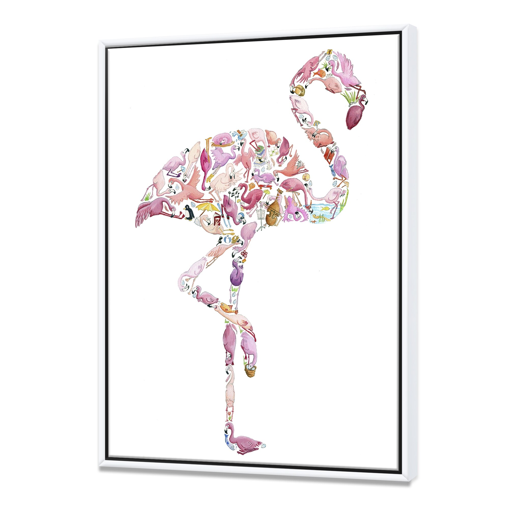 Designart "Flamingo Composition of Flamingo" Cottage Framed Canvas Wall Art
