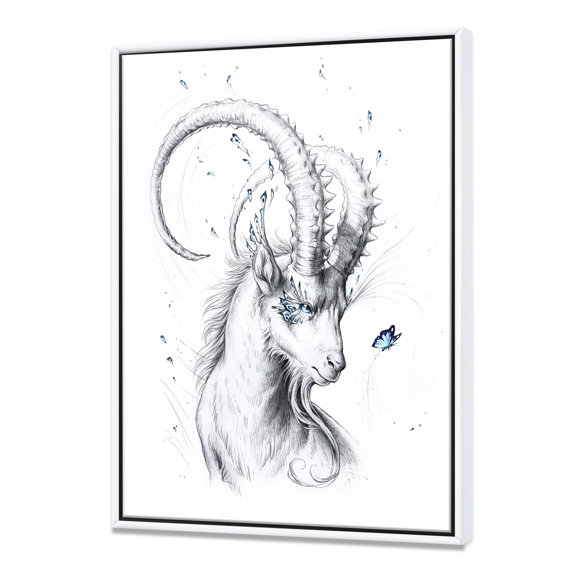 Designart "Handdrawn Blue Capricorn" Cottage Framed Canvas Artwork Print