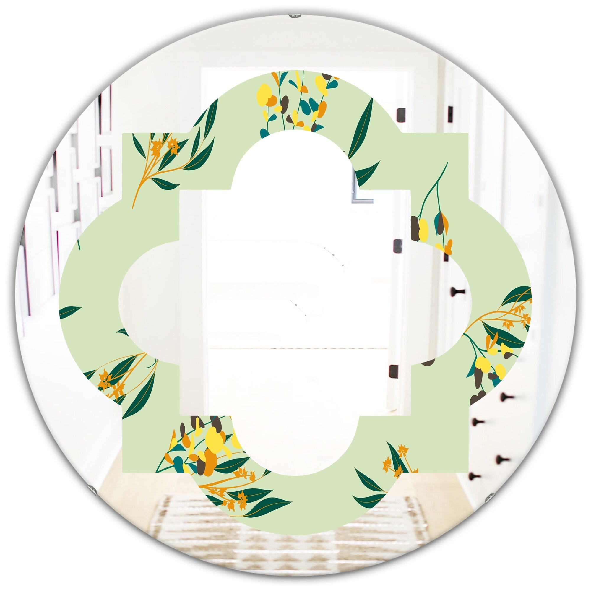 Designart 'Bright Eucalyptus Floral Pattern III' Printed Cottage Round or Oval Wall Mirror - Quatrefoil
