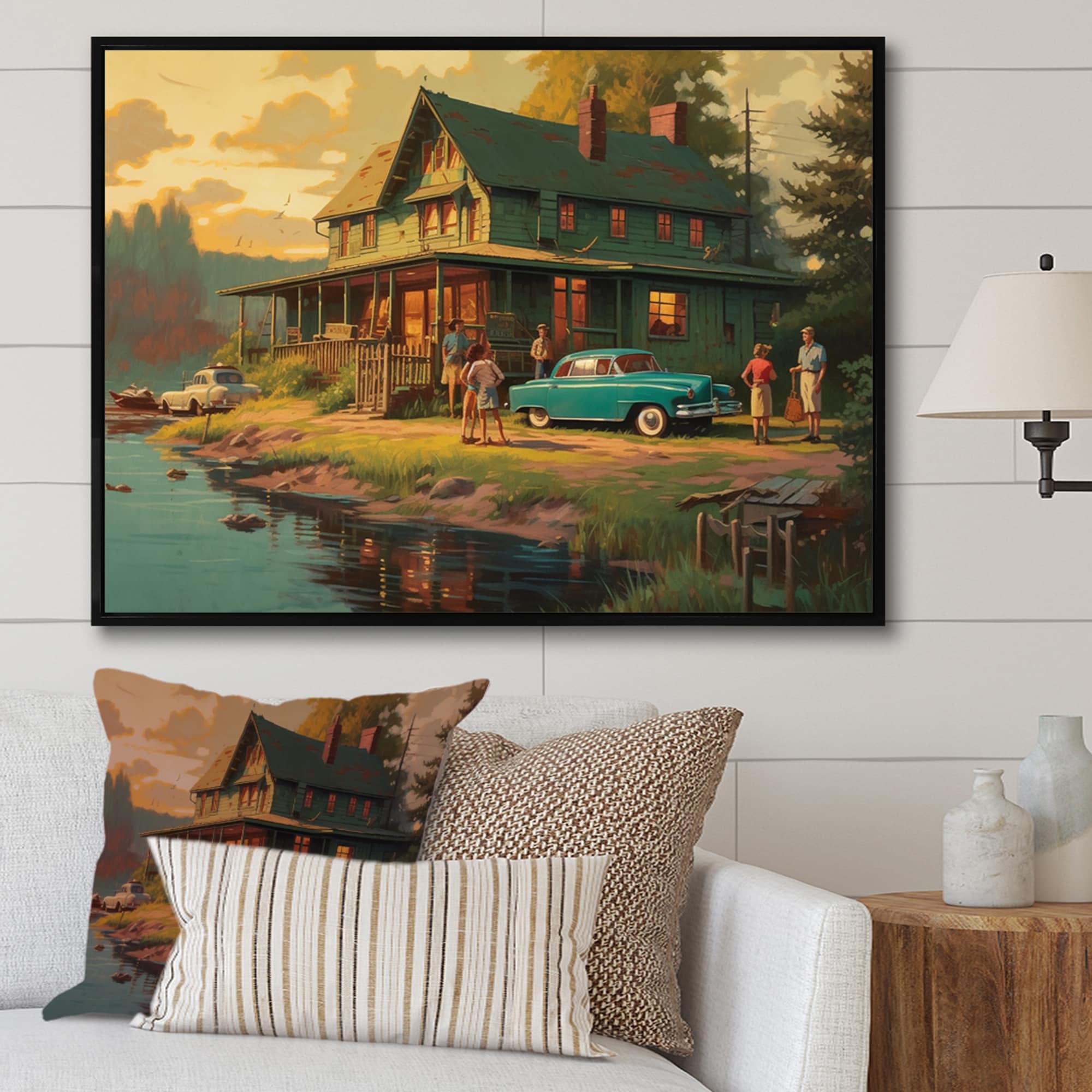 Designart "Autumn At the Countryhouse I" Lake House Cottage Framed Canvas Wall Art Print
