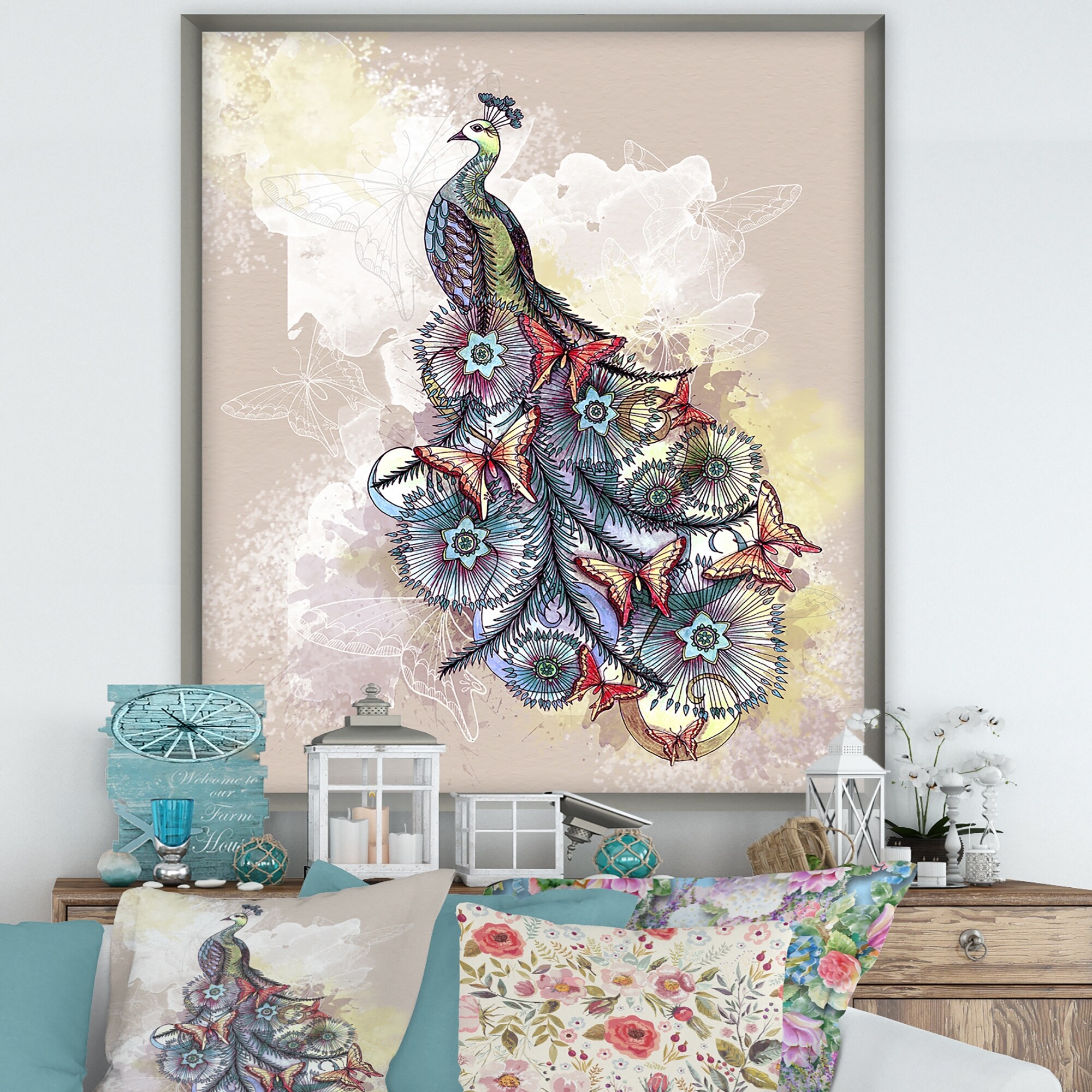 Designart "Butterfly Peacock" Cottage Premium Framed Art Print