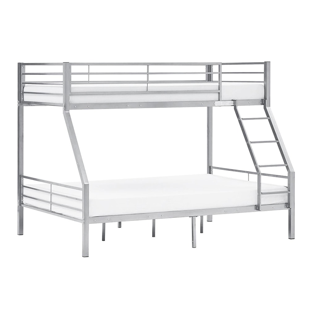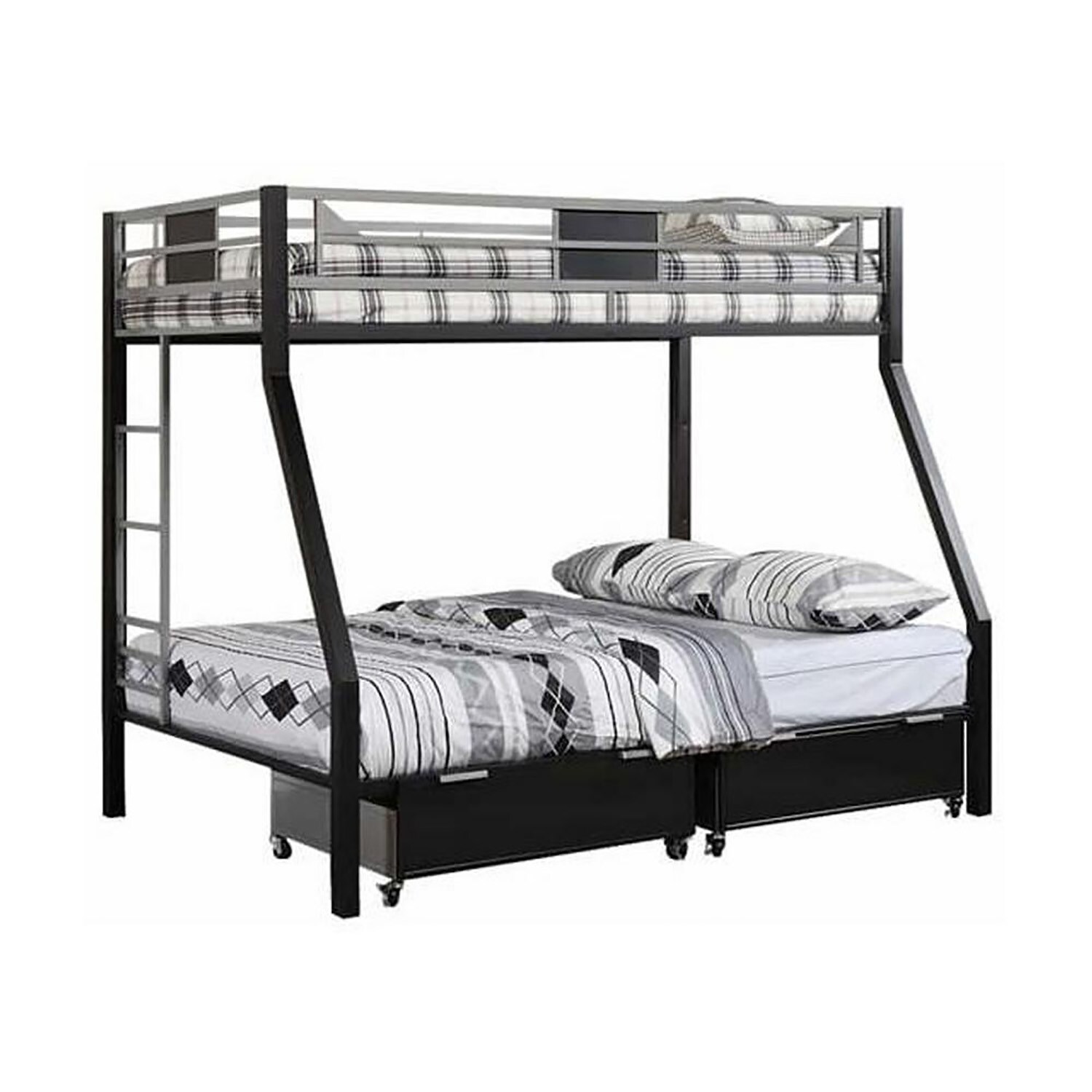 Metal Twin Over Full Bunk Bed in Silver and Black