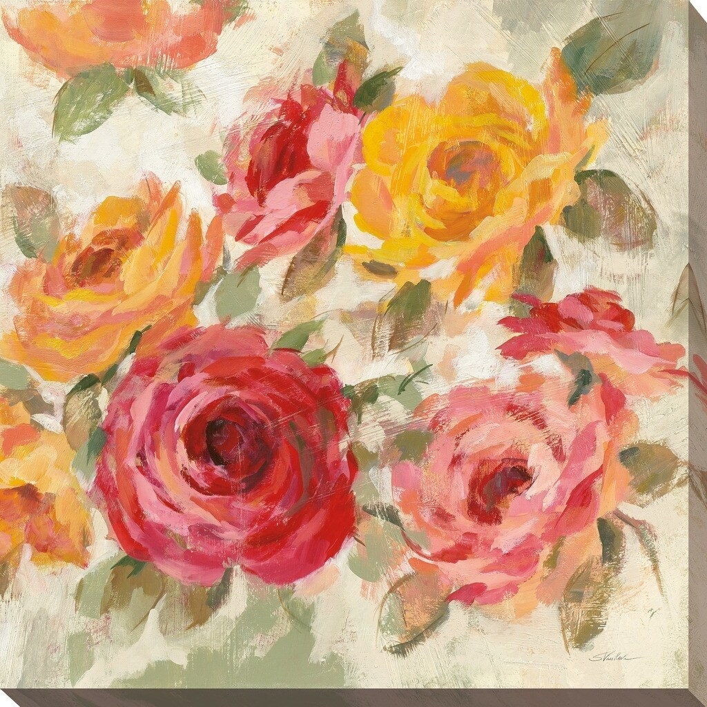 "Brushy Roses Crop with Teal" Giclee Stretched Canvas Wall Art