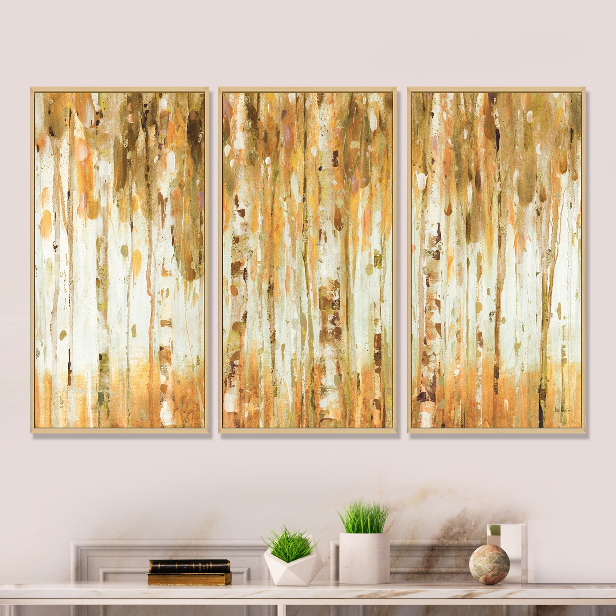 Designart "The Forest I Fall Crop" Modern & Contemporary Framed Art Set of 3 - 4 Colors of Frames