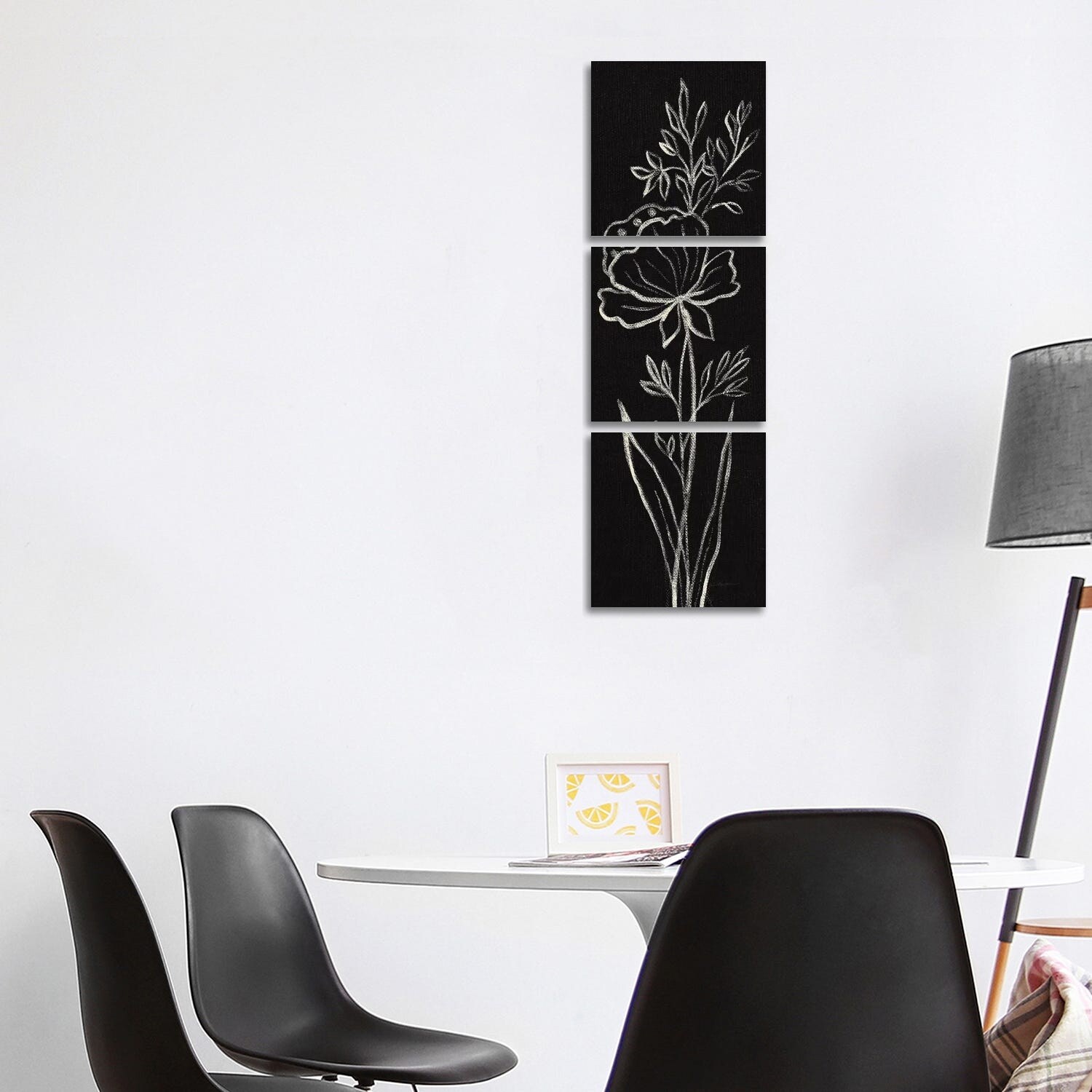 iCanvas "Black Floral III Crop" by Silvia Vassileva 3-Piece Canvas Wall Art Set