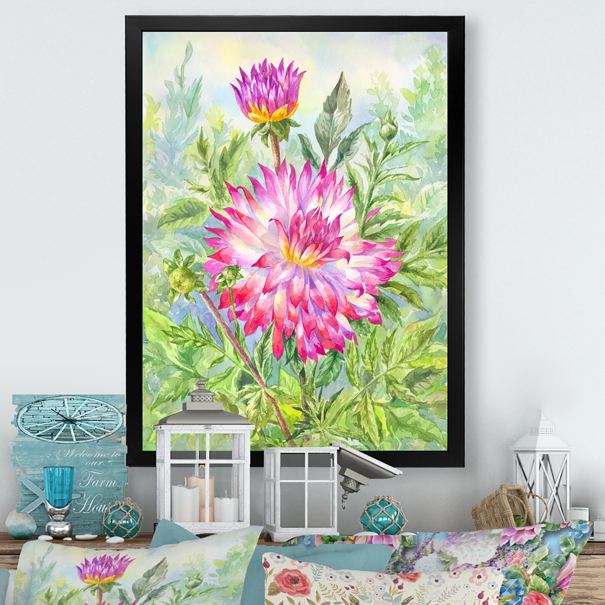 Designart "Dahlia In Flowering Garden" Traditional Framed Wall Art