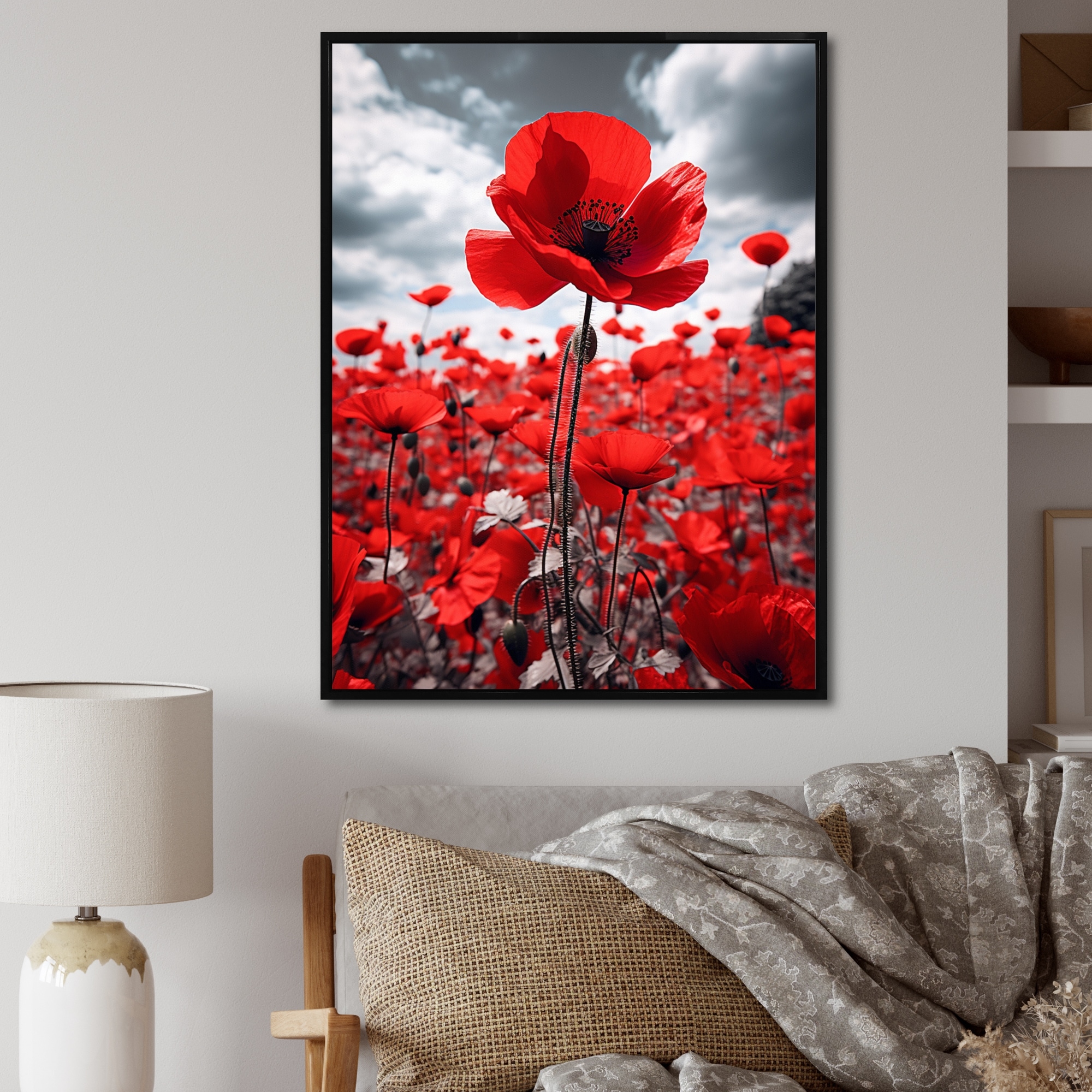 Designart "Flower Field Scarlet Symphony I" Dahlia Framed Wall Art Living Room