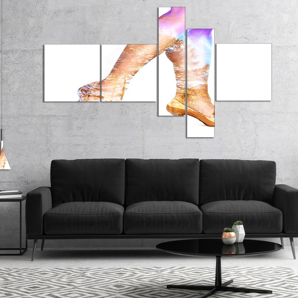 Designart "Dancer Legs and Treescape Double Exposure" Portrait Canvas Art Print