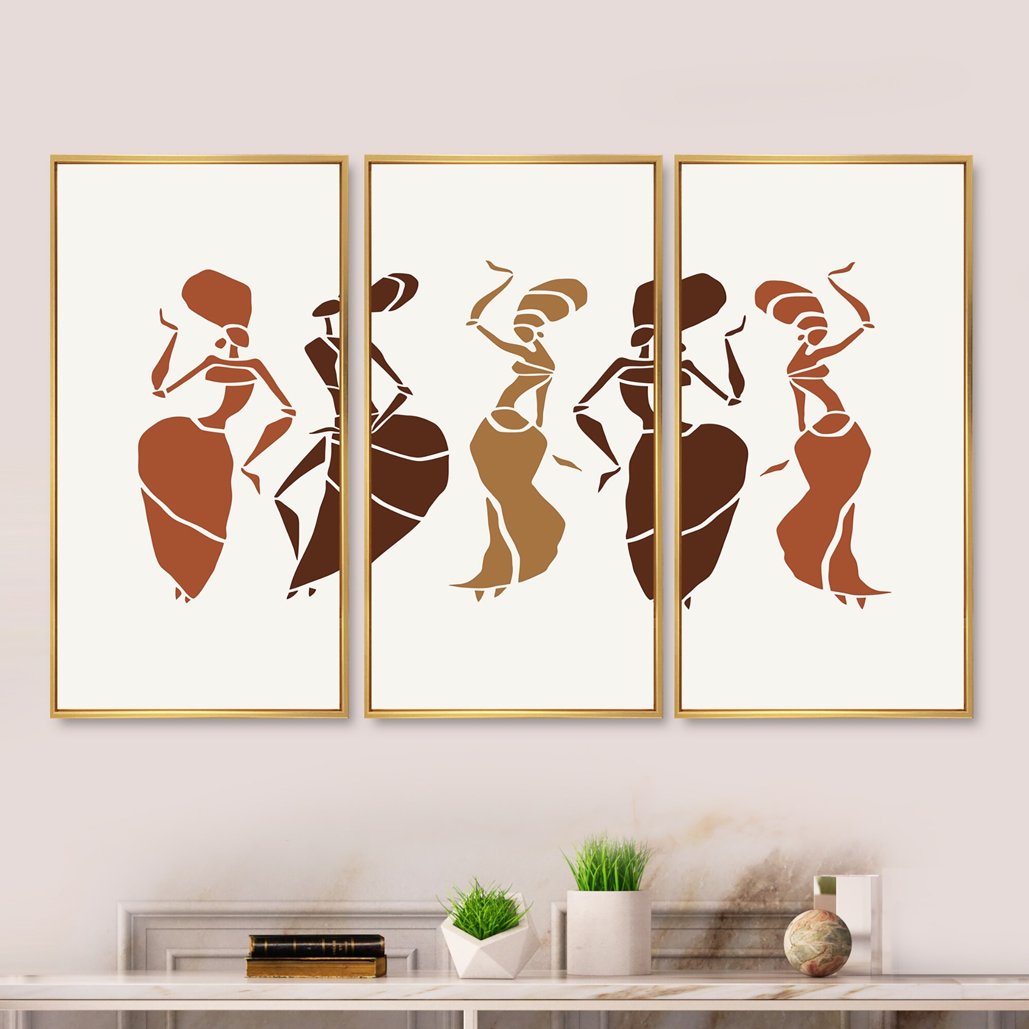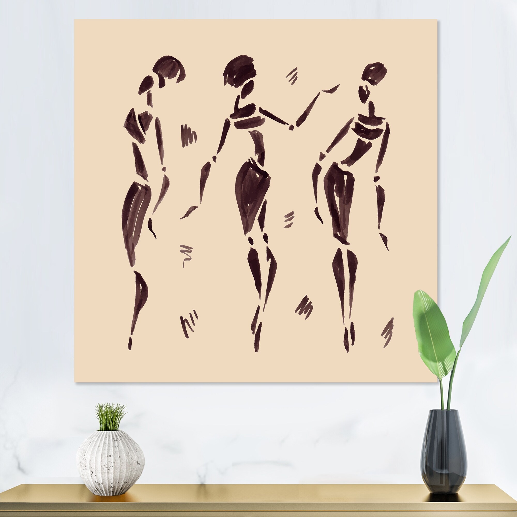 Designart "Abstract Brown Dancers" Glam Canvas Wall Art Print