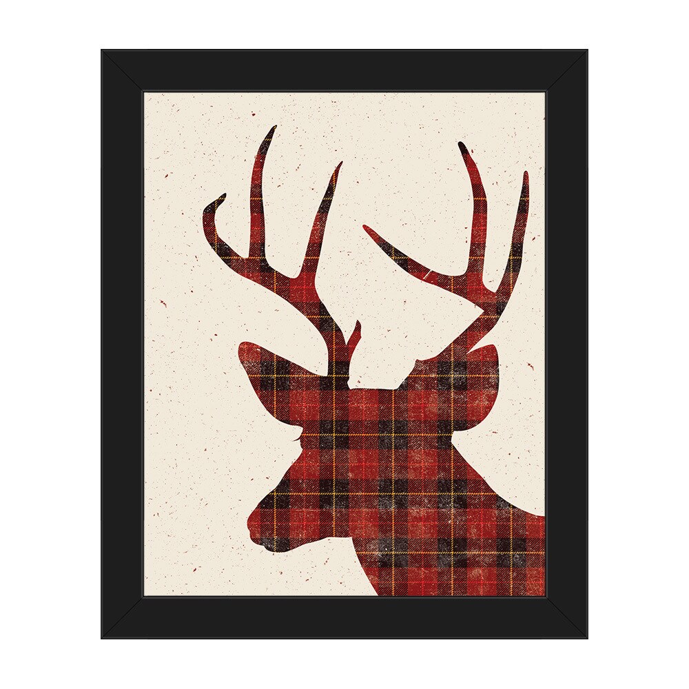 Plaid Deer Christmas Framed Canvas Wall Art