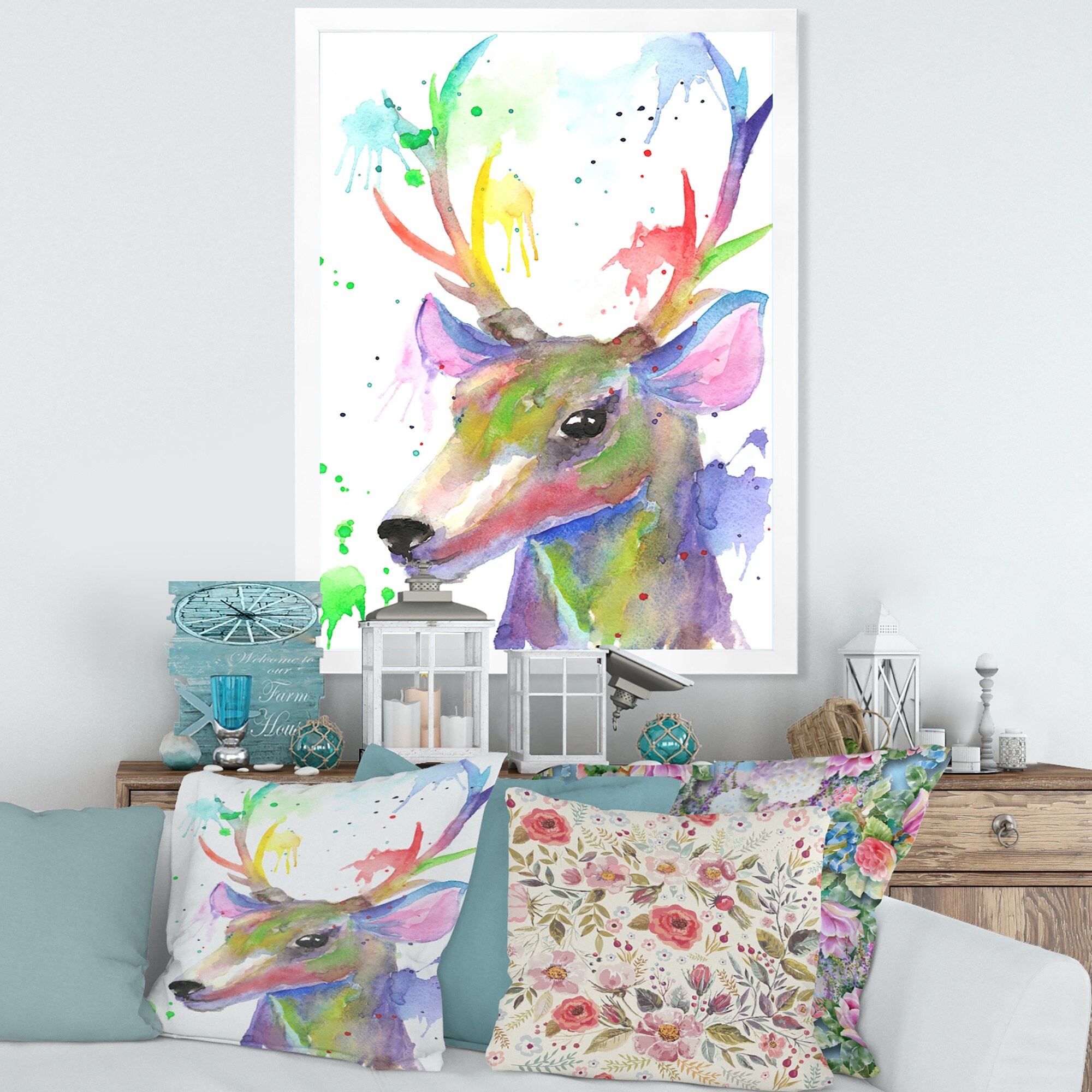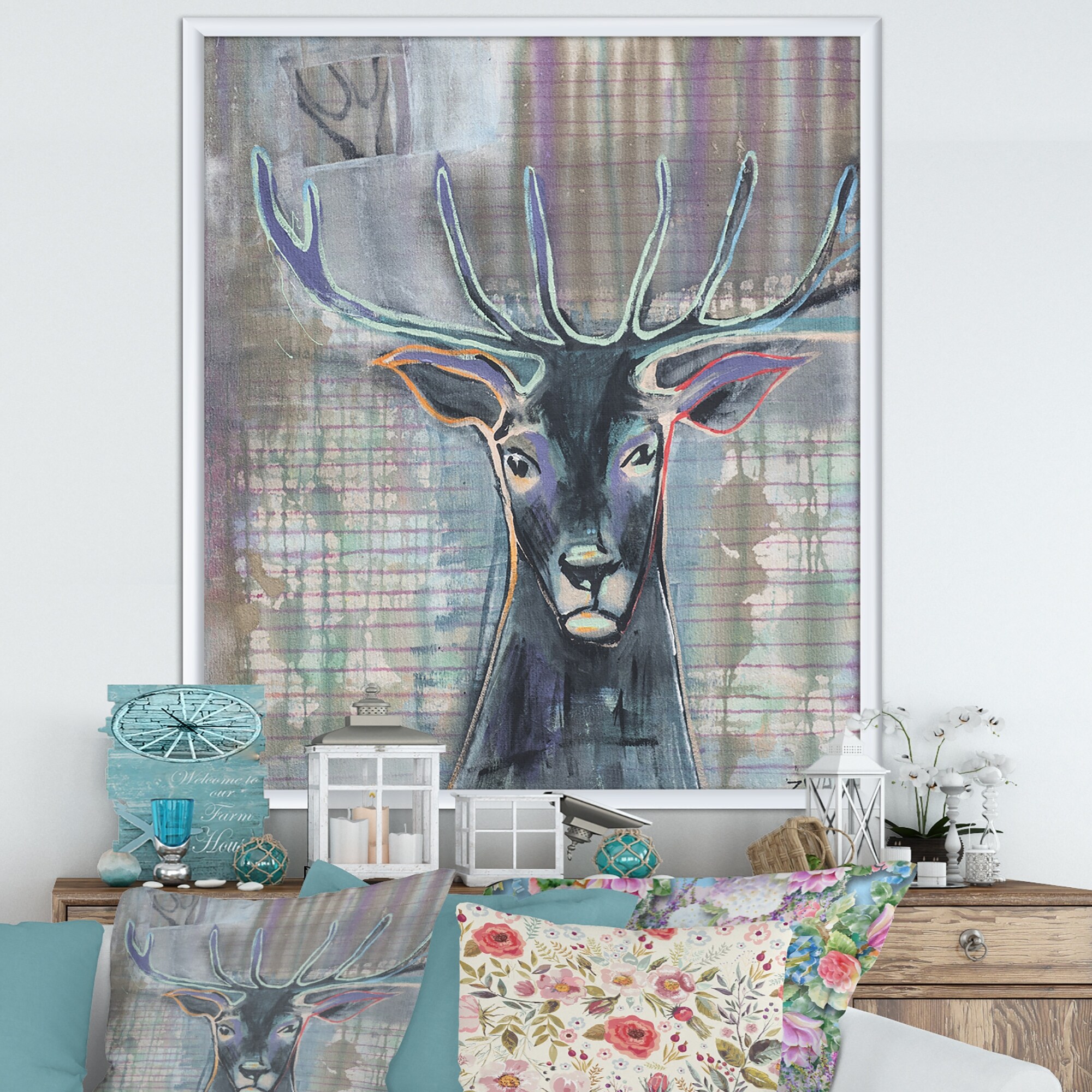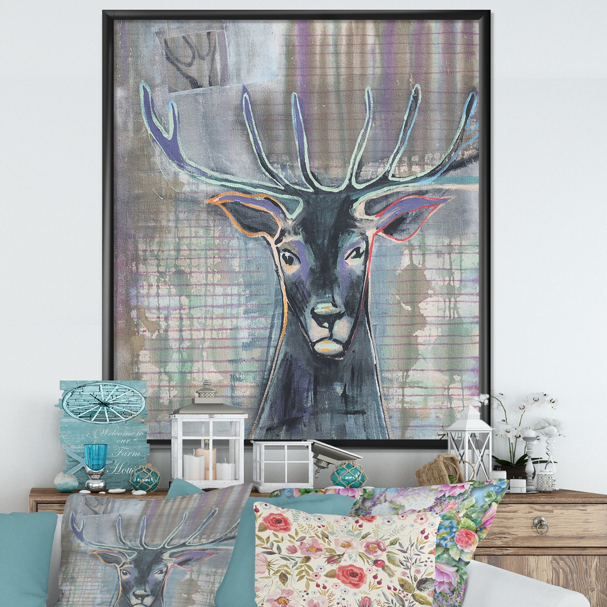 Designart "Portrait Of Colorful Deer" Traditional Framed Art Print