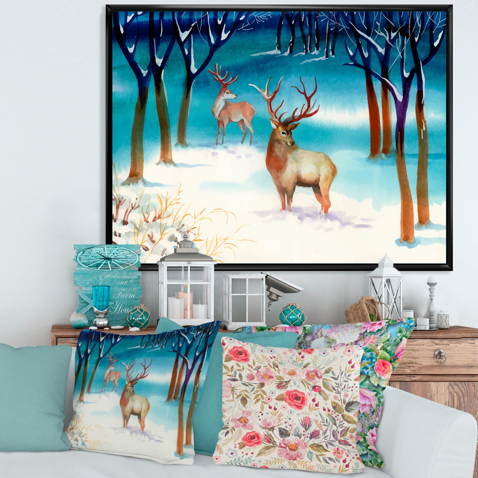 Designart "Dear Deer" Cottage Framed Art Print