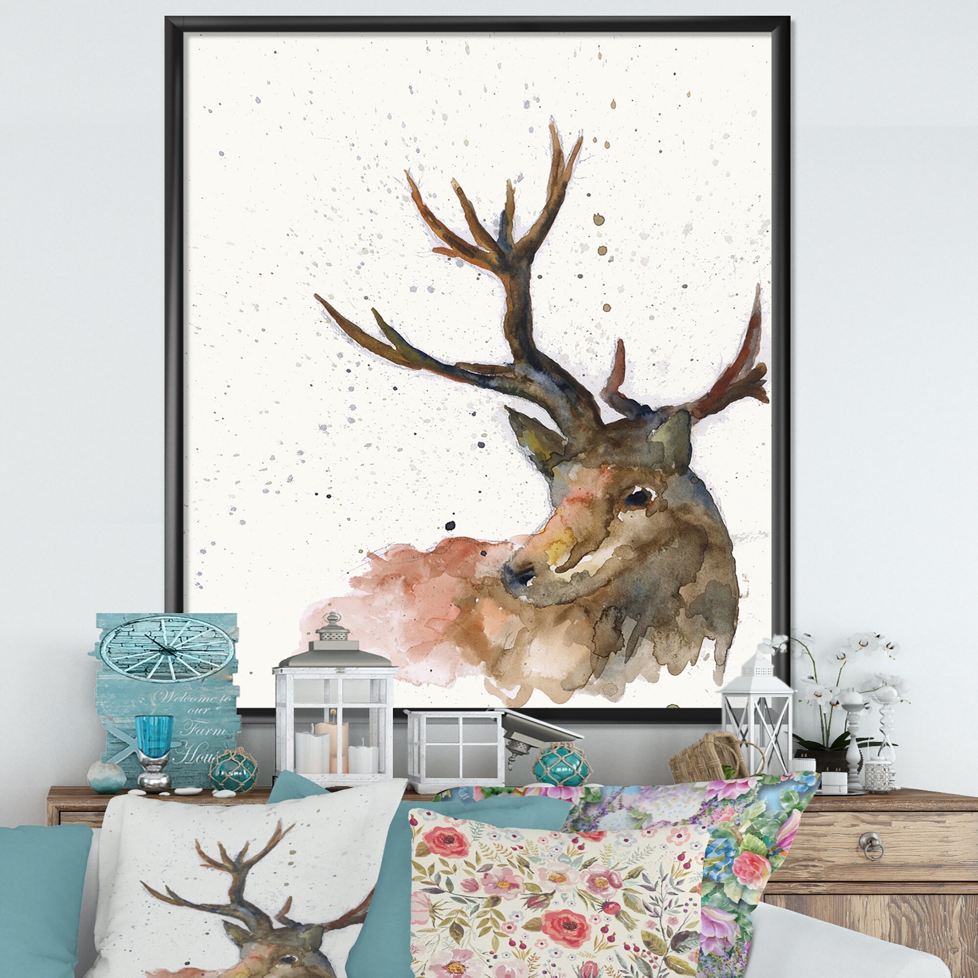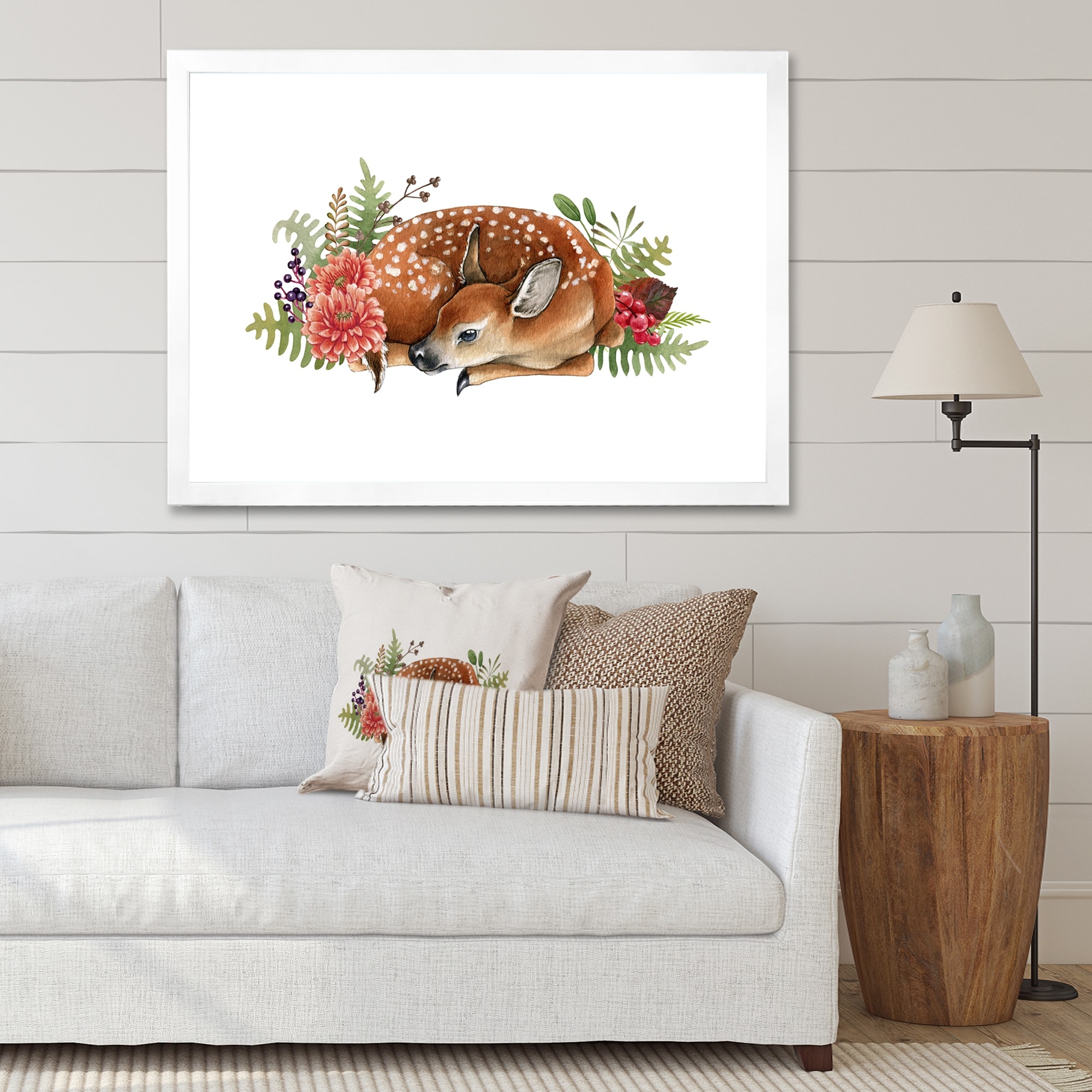 Designart "Deer on White" Cottage Framed Art Print