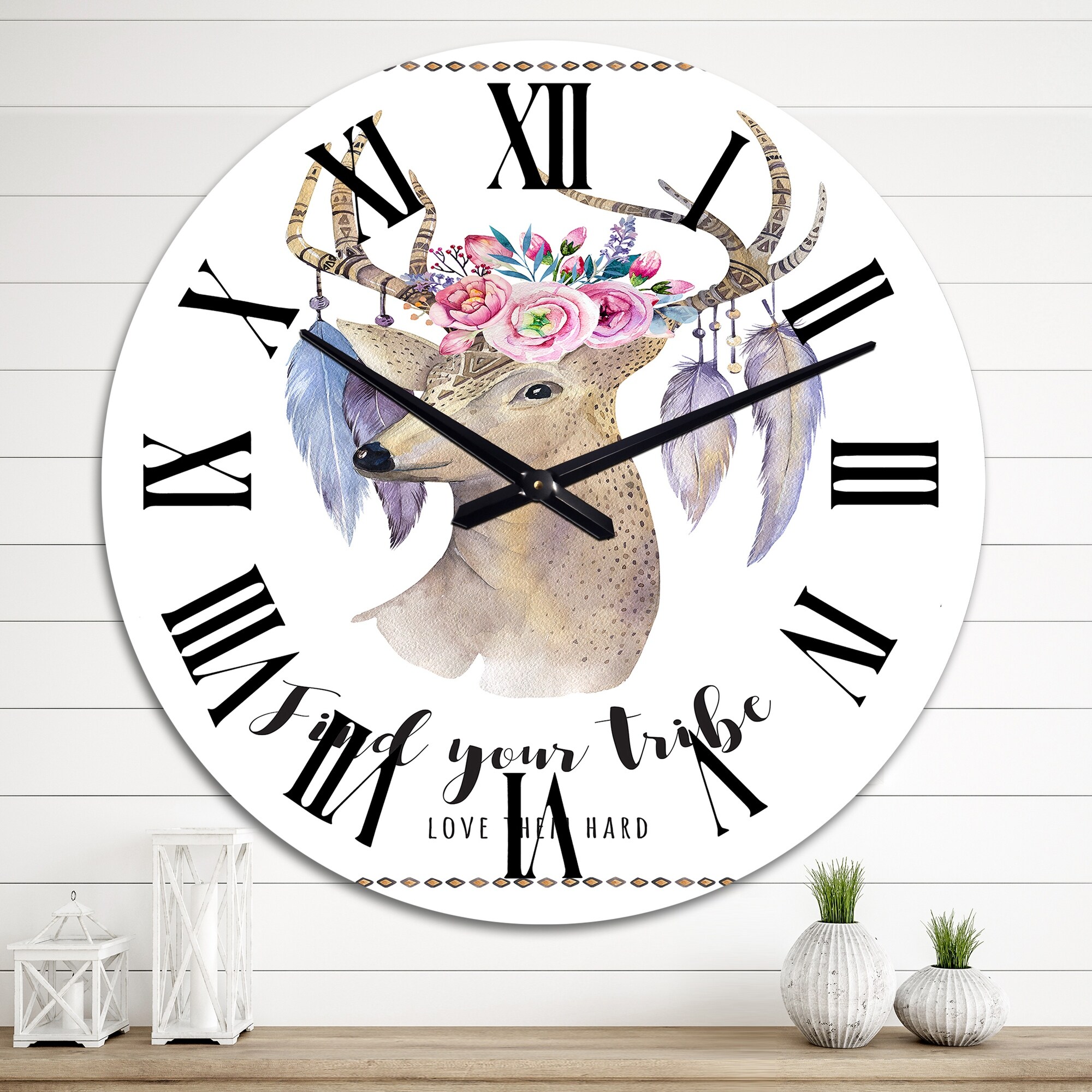 Designart 'Find Your Tribe Ethnic Deer' Traditional wall clock