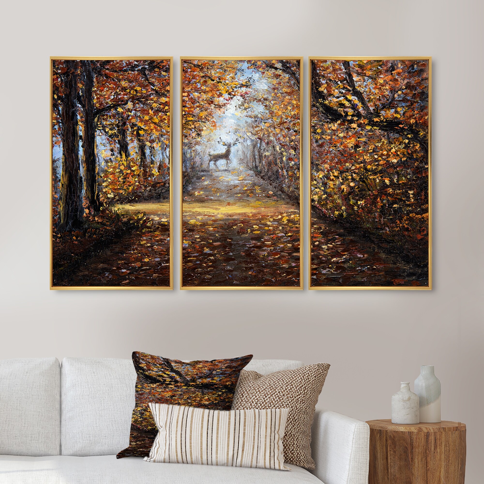 Designart "Deer In the Park" Lake House Framed Canvas Wall Art Set of 3 - 4 Colors of Frames