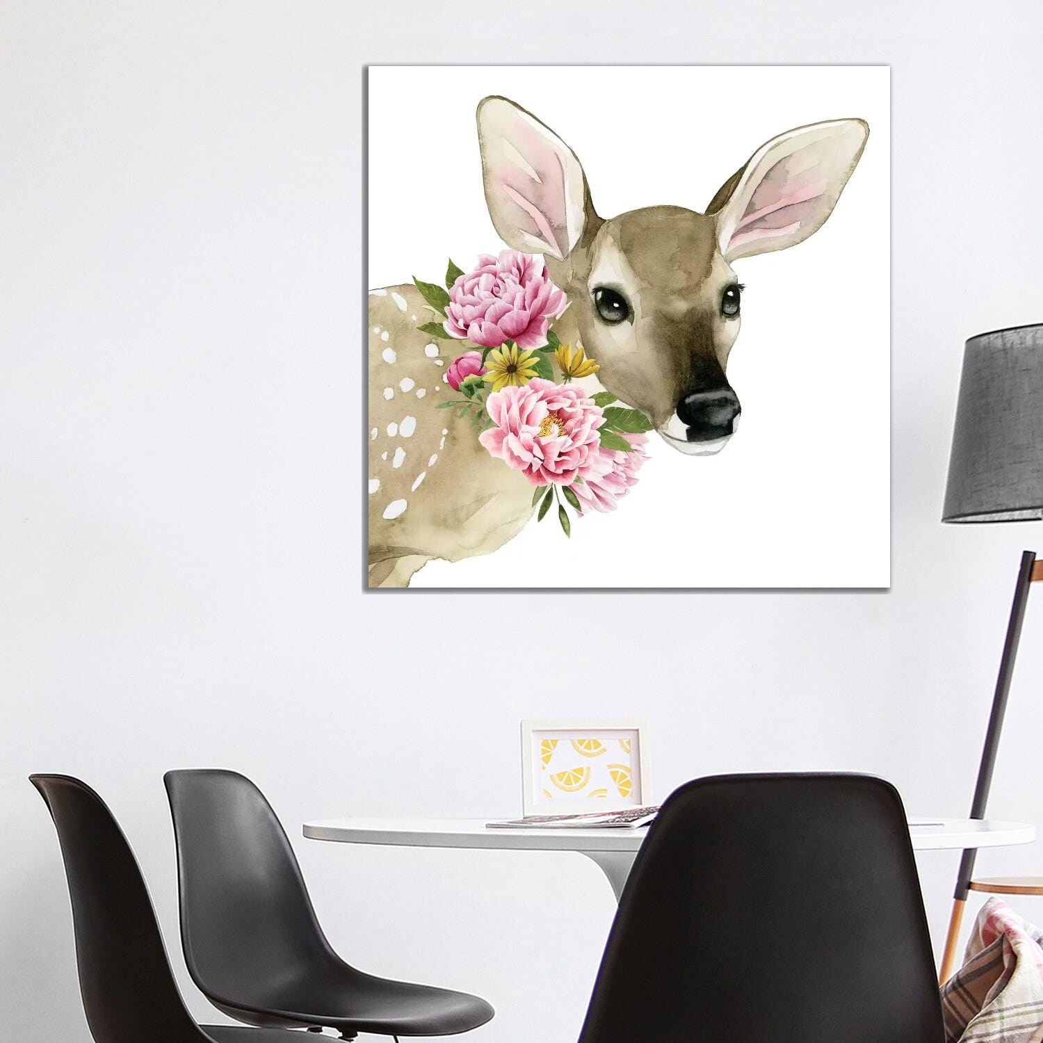 iCanvas "Floral Woodland Deer" by Patricia Pinto Framed Canvas Print