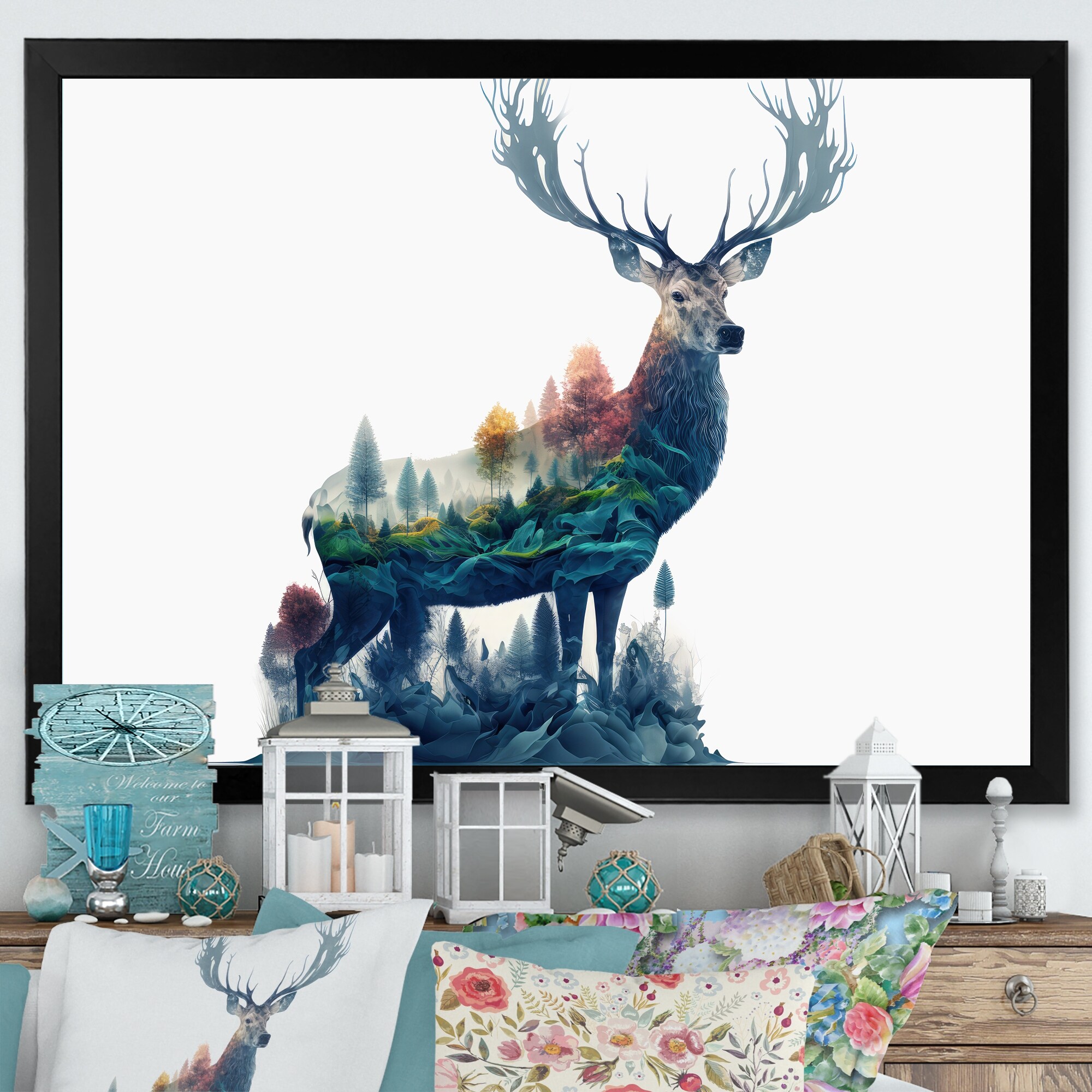 Designart "Double Exposure of a Deer With Forest" Modern Framed Art Print