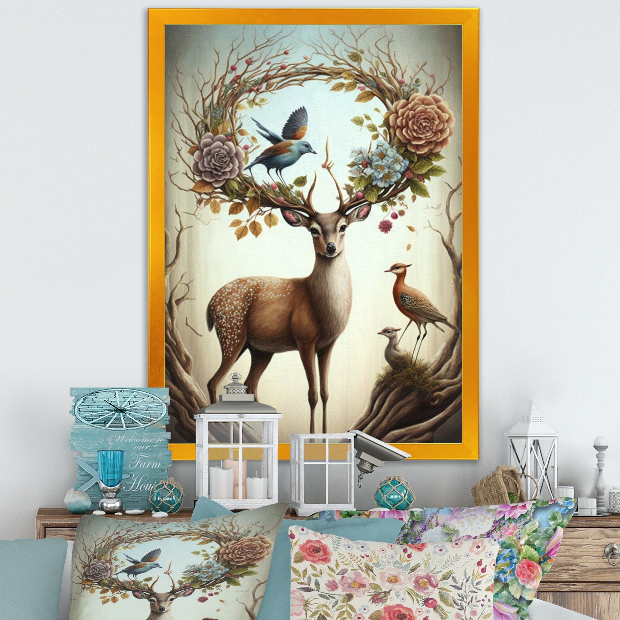 Designart "Deer With Blooming Antlers IV" Animals Framed Art Print