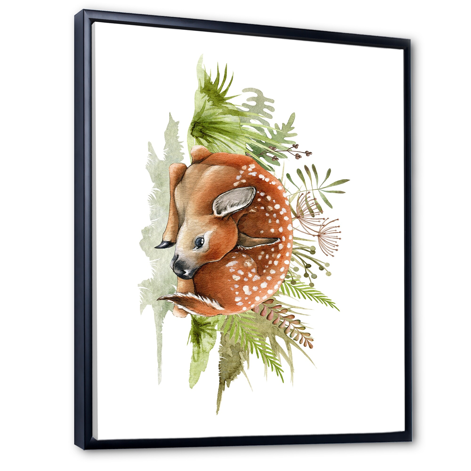 Designart "Forest Deer Cub in the Grass" Traditional Framed Canvas Wall Art Print