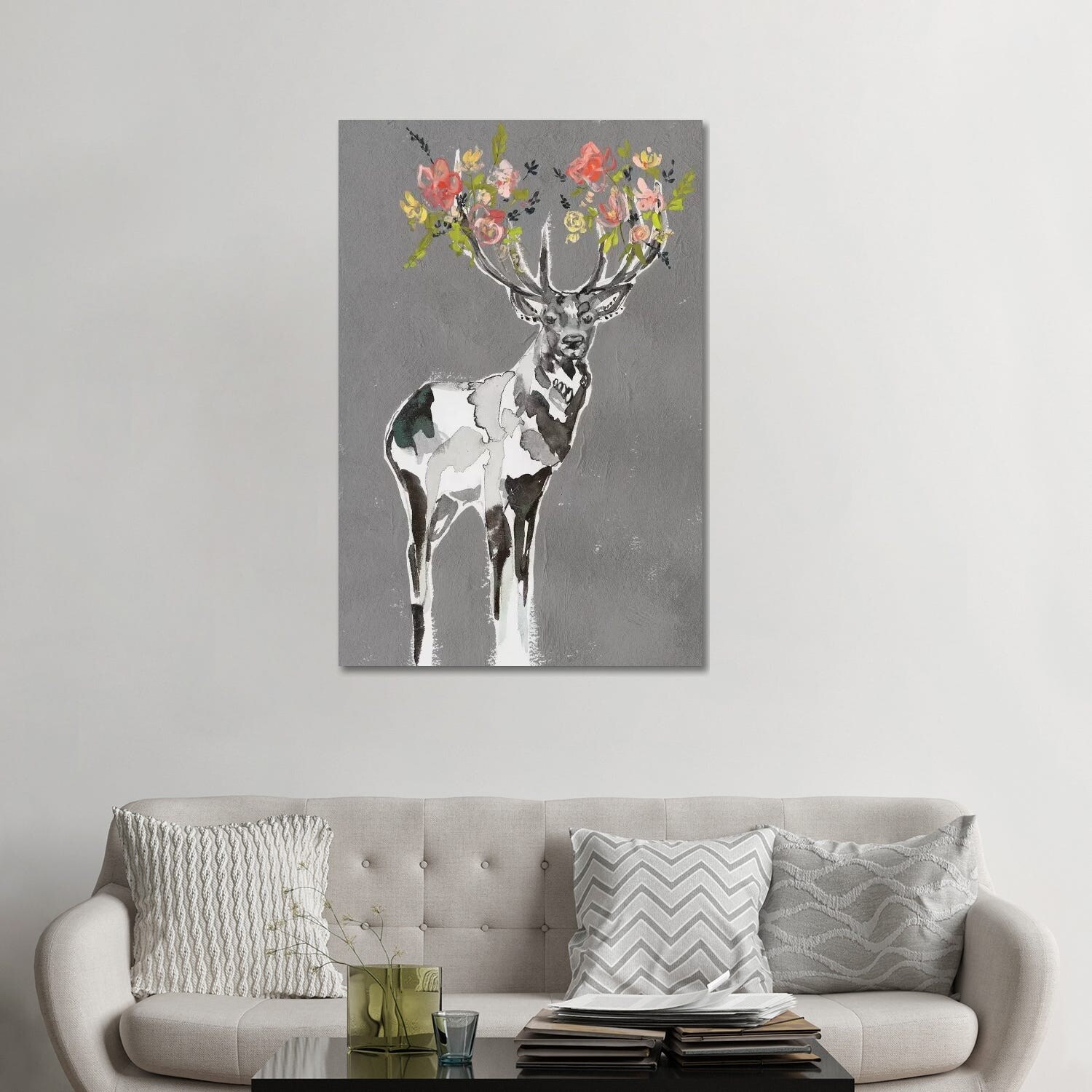 iCanvas "Deer & Flowers I" by Jennifer Goldberger Canvas Print