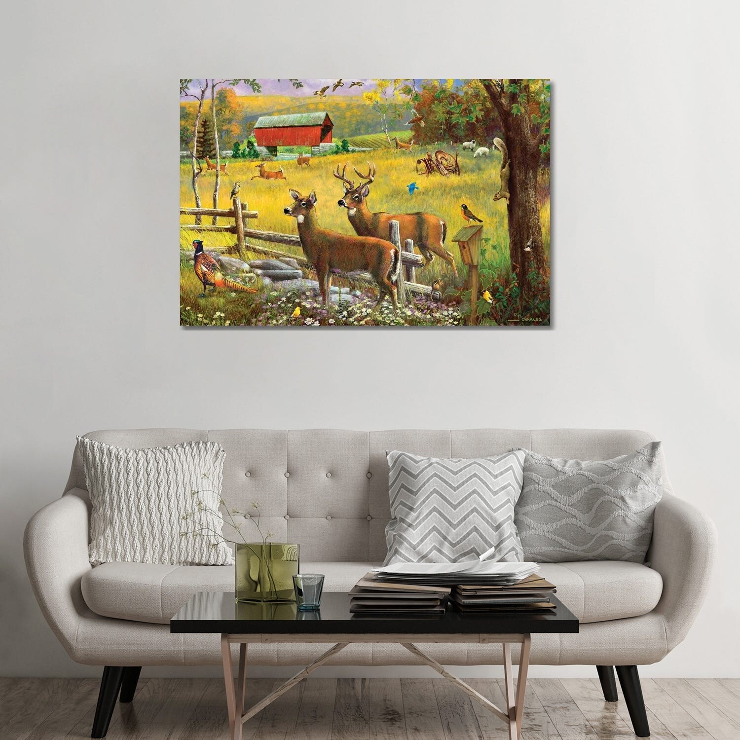 iCanvas "Deer And Covered Bridge" by J. Charles Canvas Print