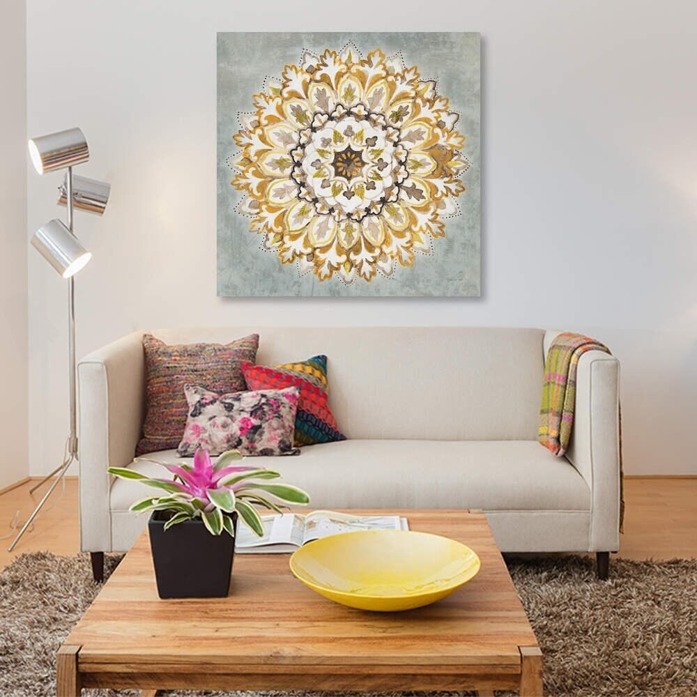 iCanvas "Mandala Delight II Yellow Gray" by Danhui Nai Gallery-Wrapped Canvas Print