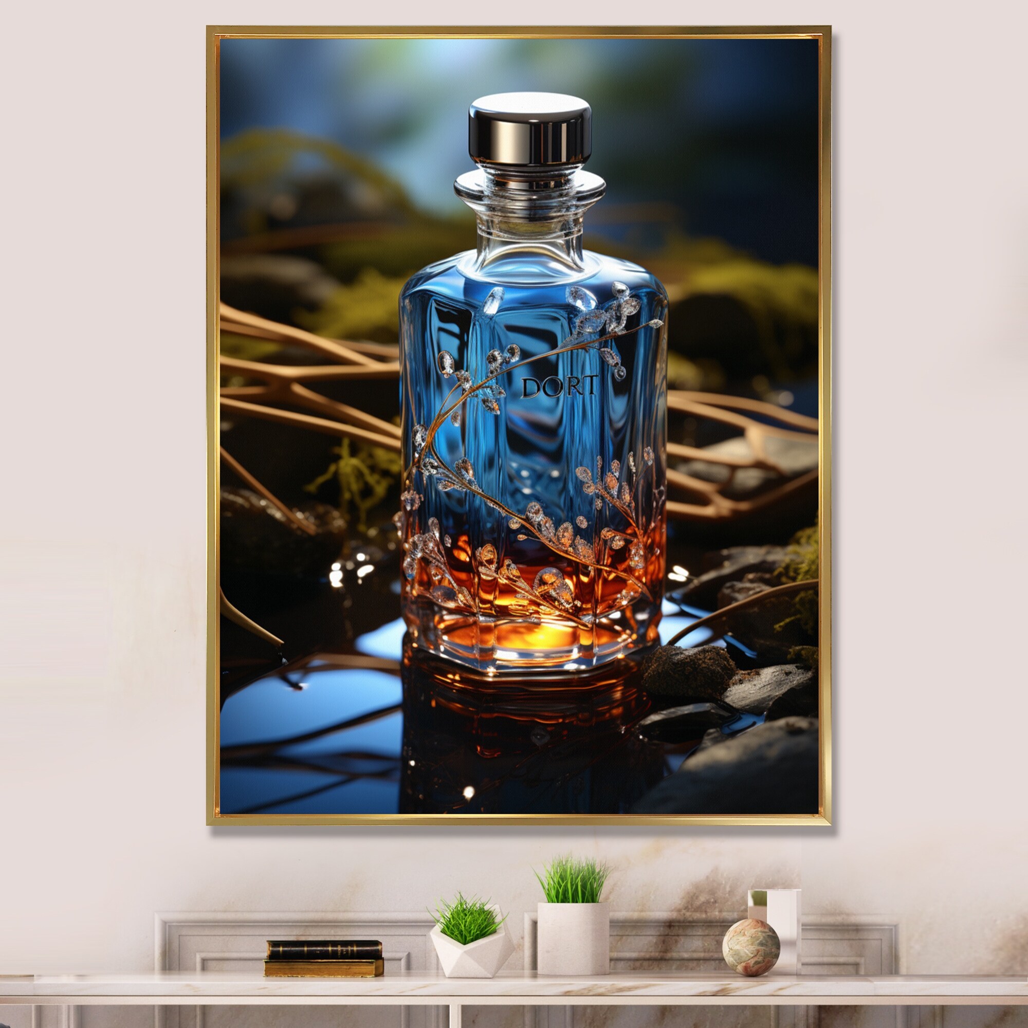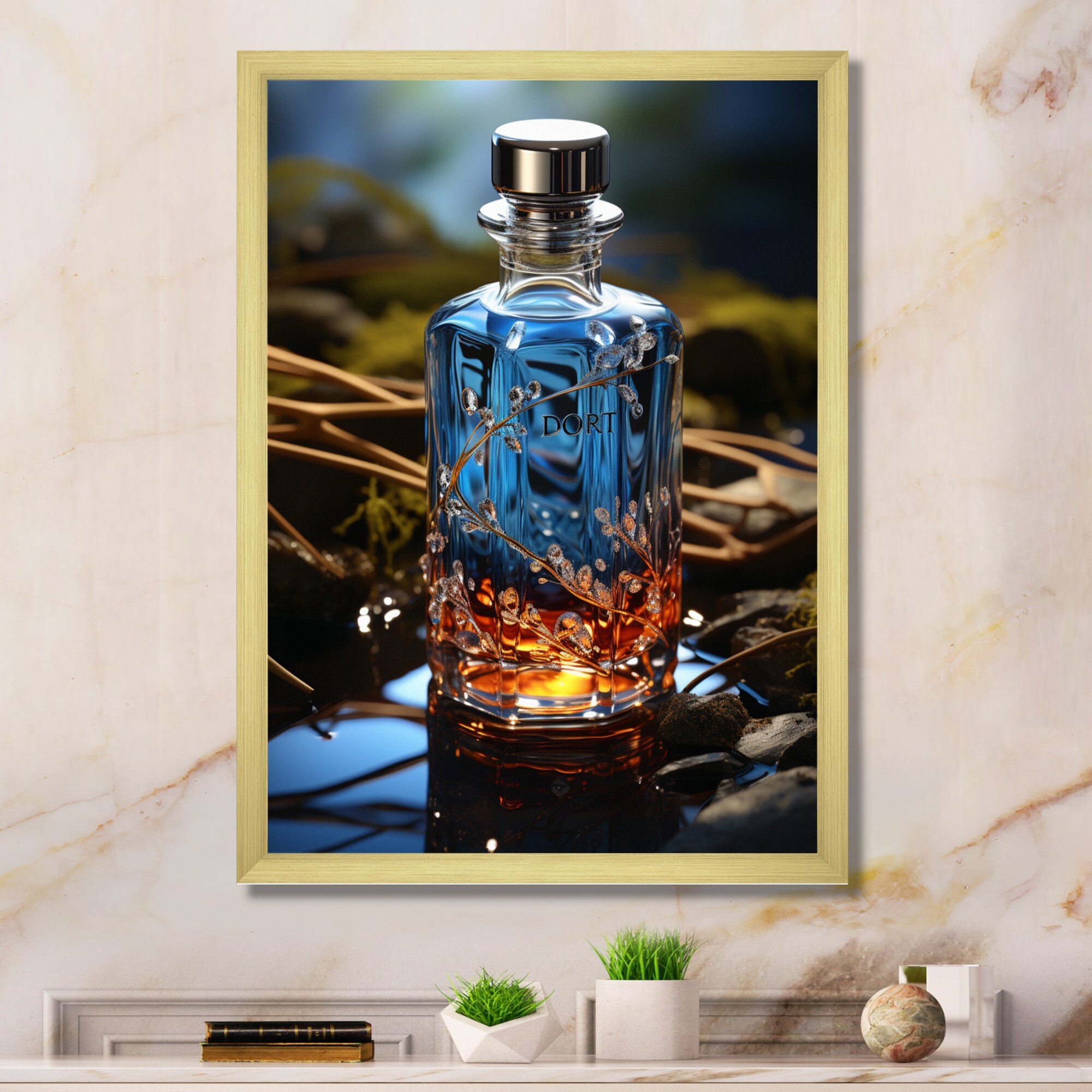 Designart "Fashion Blue Perfume Delight II" Fashion Framed Canvas Print