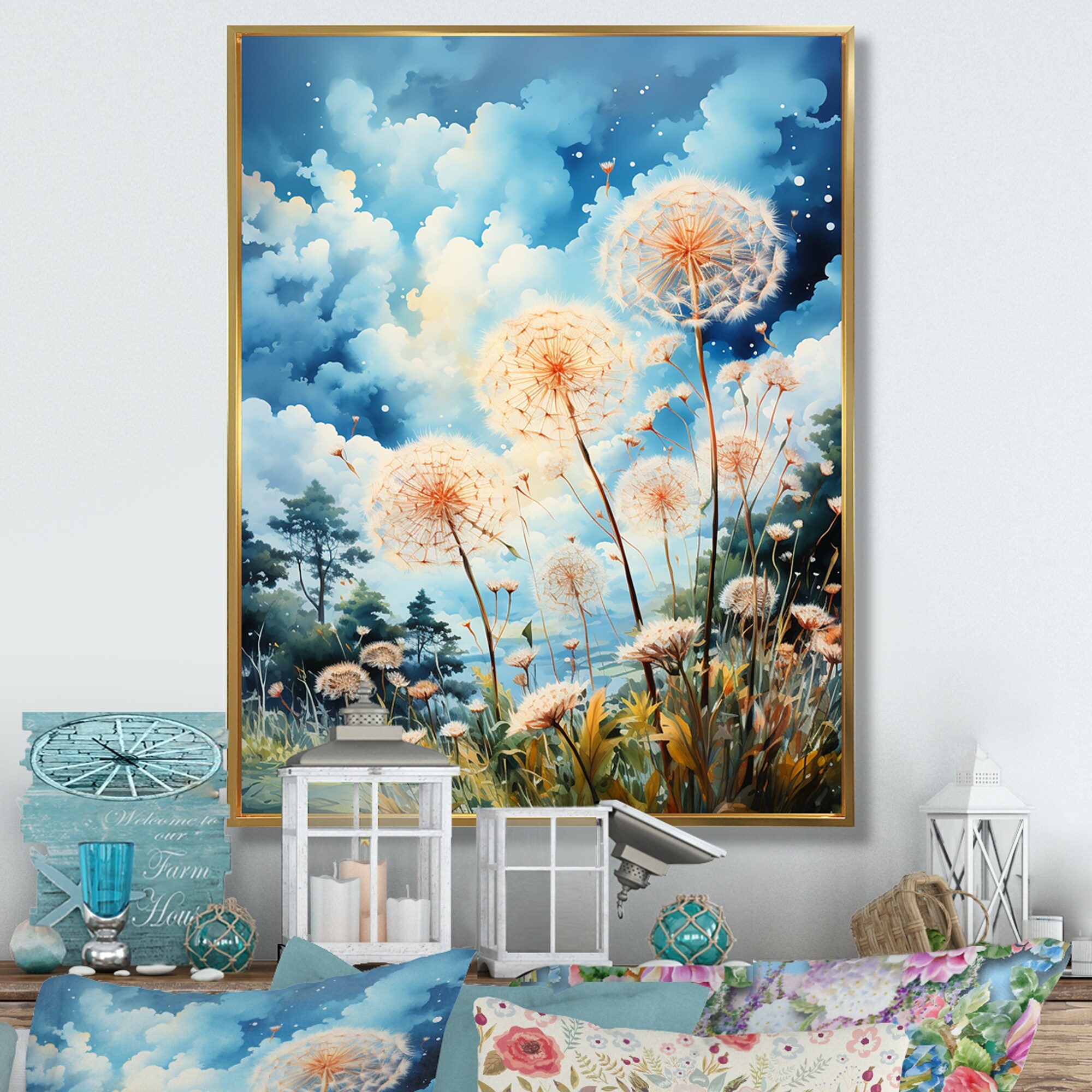 Designart "Meadow Dandelion Delight I" Meadow Framed Canvas Art Print