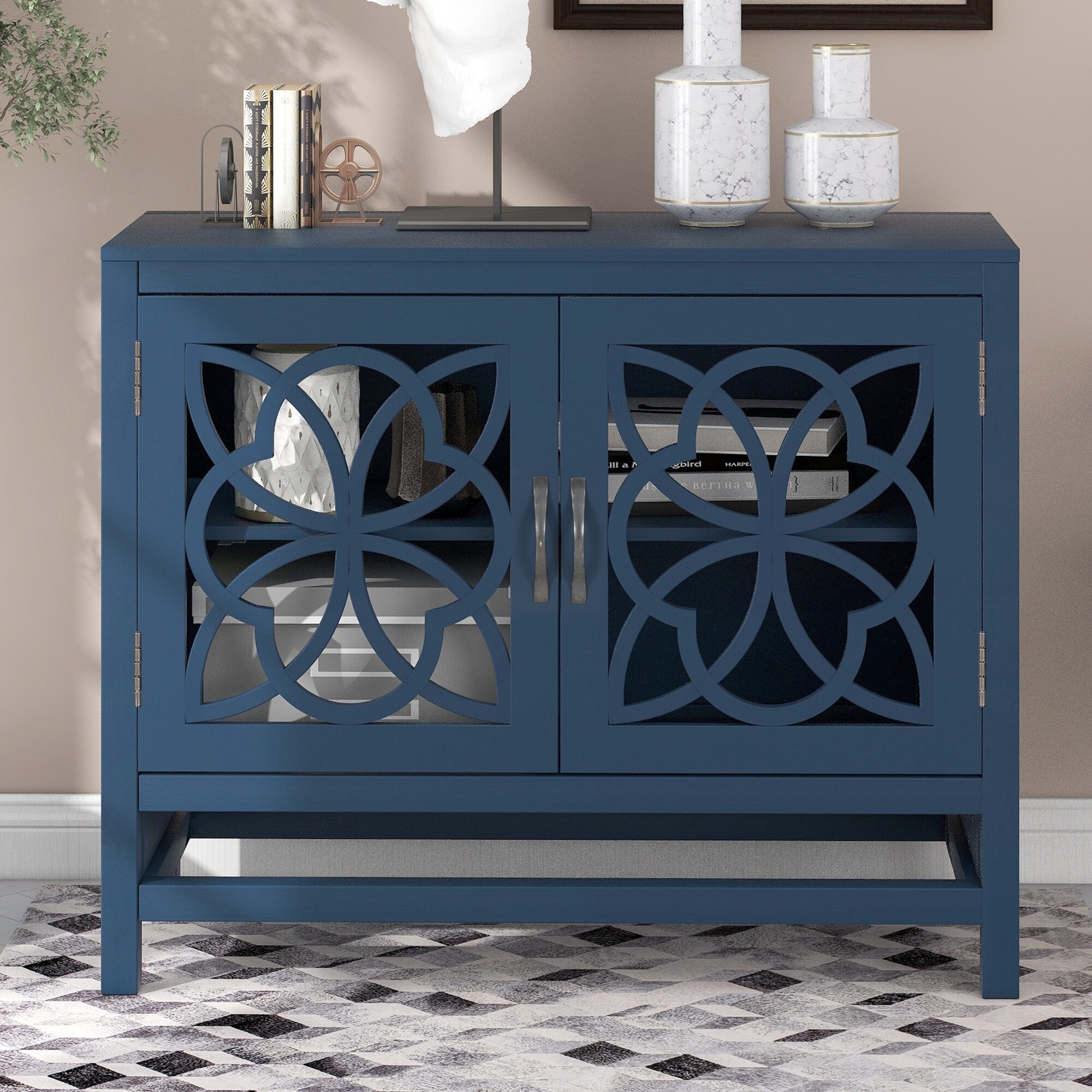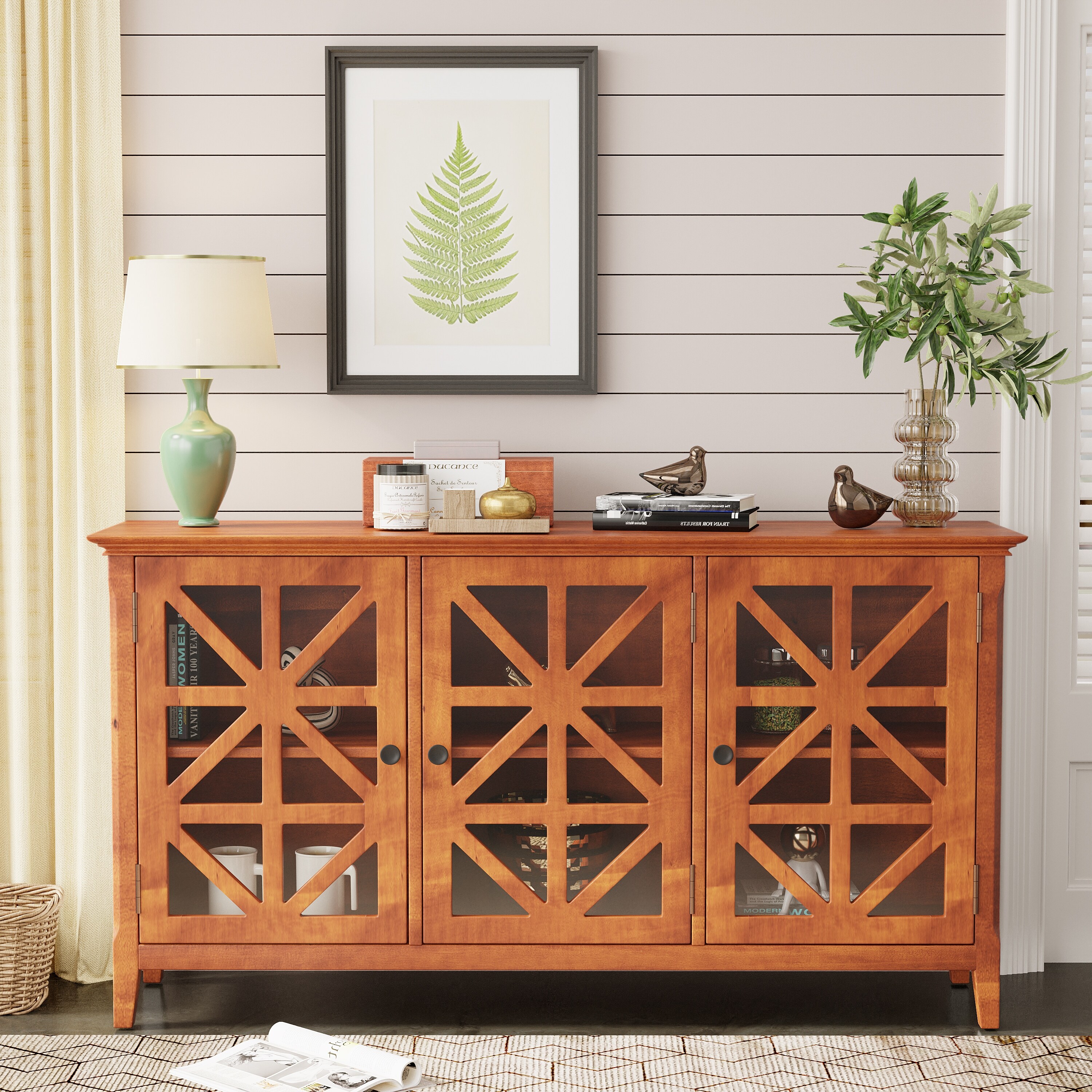 Wood Accent Buffet Sideboard Storage Cabinet with Doors and Adjustable Shelf, Entryway Kitchen Dining Room